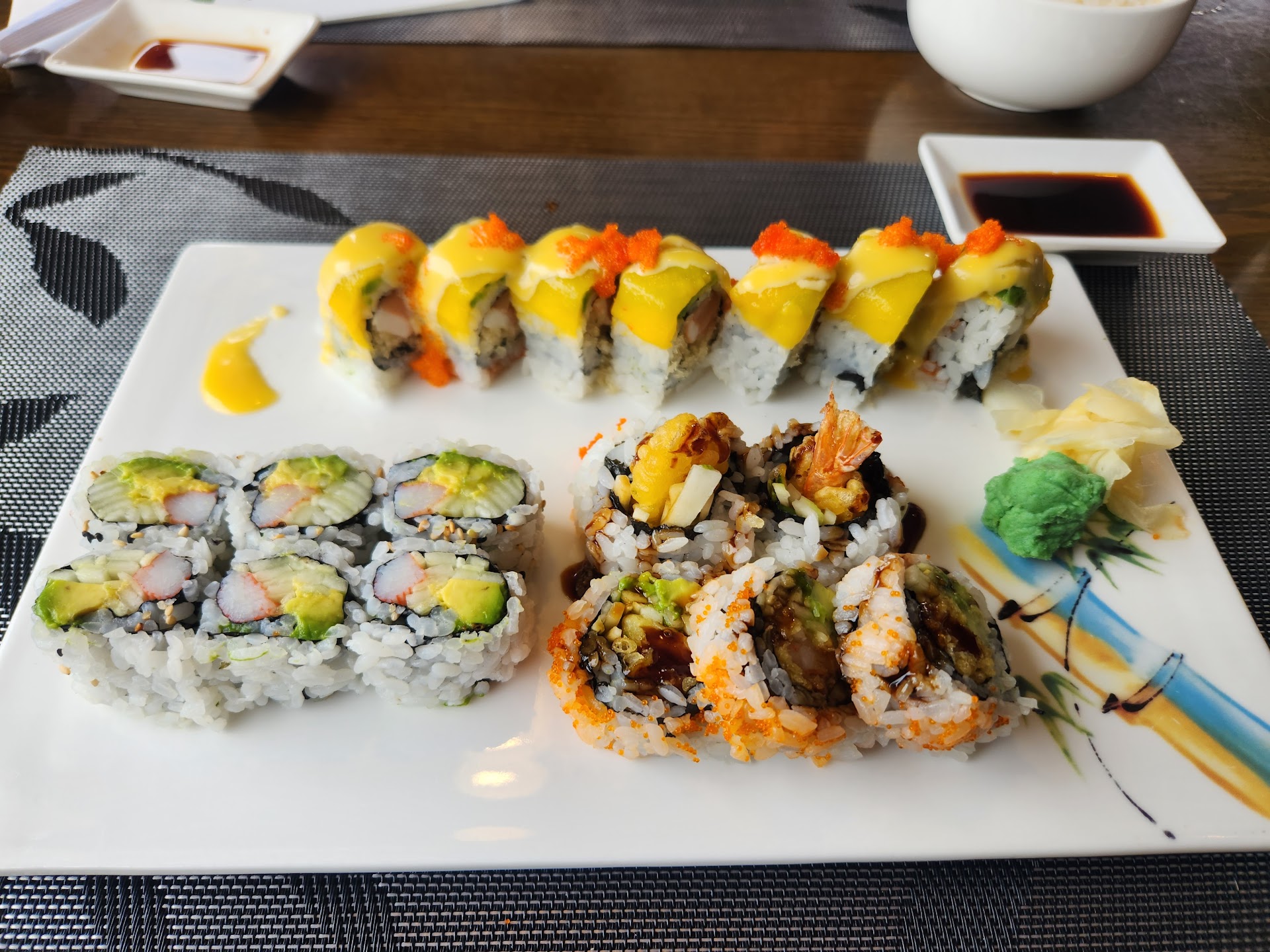 The food was ok, nothing spectacular, the pork gyoza and fried wonton and egg rolls were not great, wonton soup was ok, sushi was good, but my issue was the wait time 1 hour 7 min after I placed my order, finally got my food. I placed online, it said 25min I got there 30 min after I placed my order and waited another 37 min. They said they were busy, they were not busy. 2 couples were in the restaurant and 5 people picked up food while I waited who also placed orders by phone, they waited as long as I did. 2 orders were taken over the phone and both times the very young man at the register told them 30 min. If were all waiting an hour for our food why would you say that? It was a waste of my time waiting for ok food. They were nice, the sushi was edible but the misrepresentation of when my food would be ready (as well as others who ordered) seems dishonest and disorganized. Edit-i changed my review from 3 to 4 stars, I've been back several times since the sushi was good, I have not tried any other food except sushi. I never had an issue with wait times since first review. I would recommend coming here for sushi and like I said earlier the staff is very nice so dining in would likely be a...