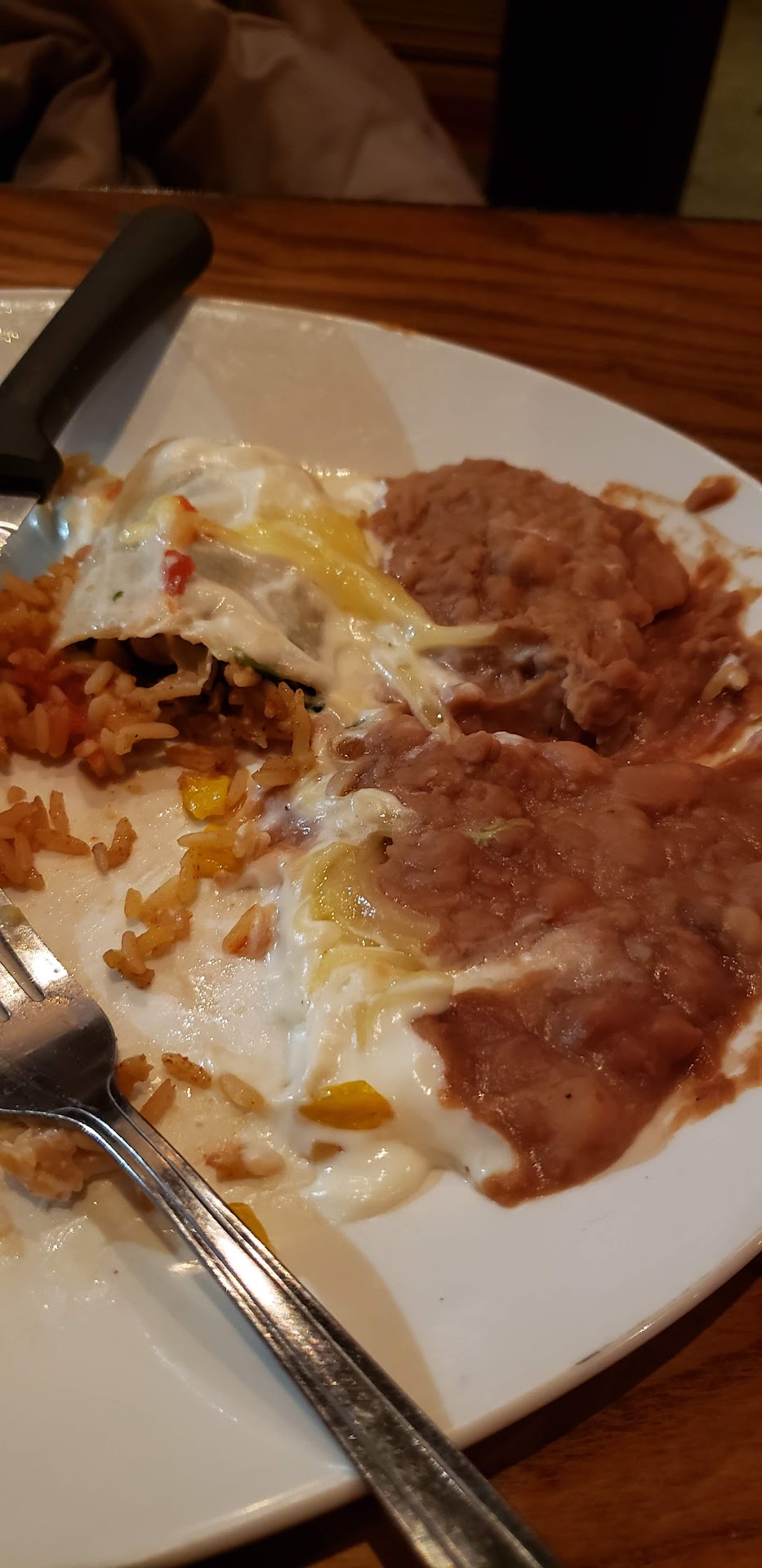 She also ordered a side of black beans that tasted like they were from a can. AND they decided to cover them with some weird chunky cottage cheese mix that we picked off.