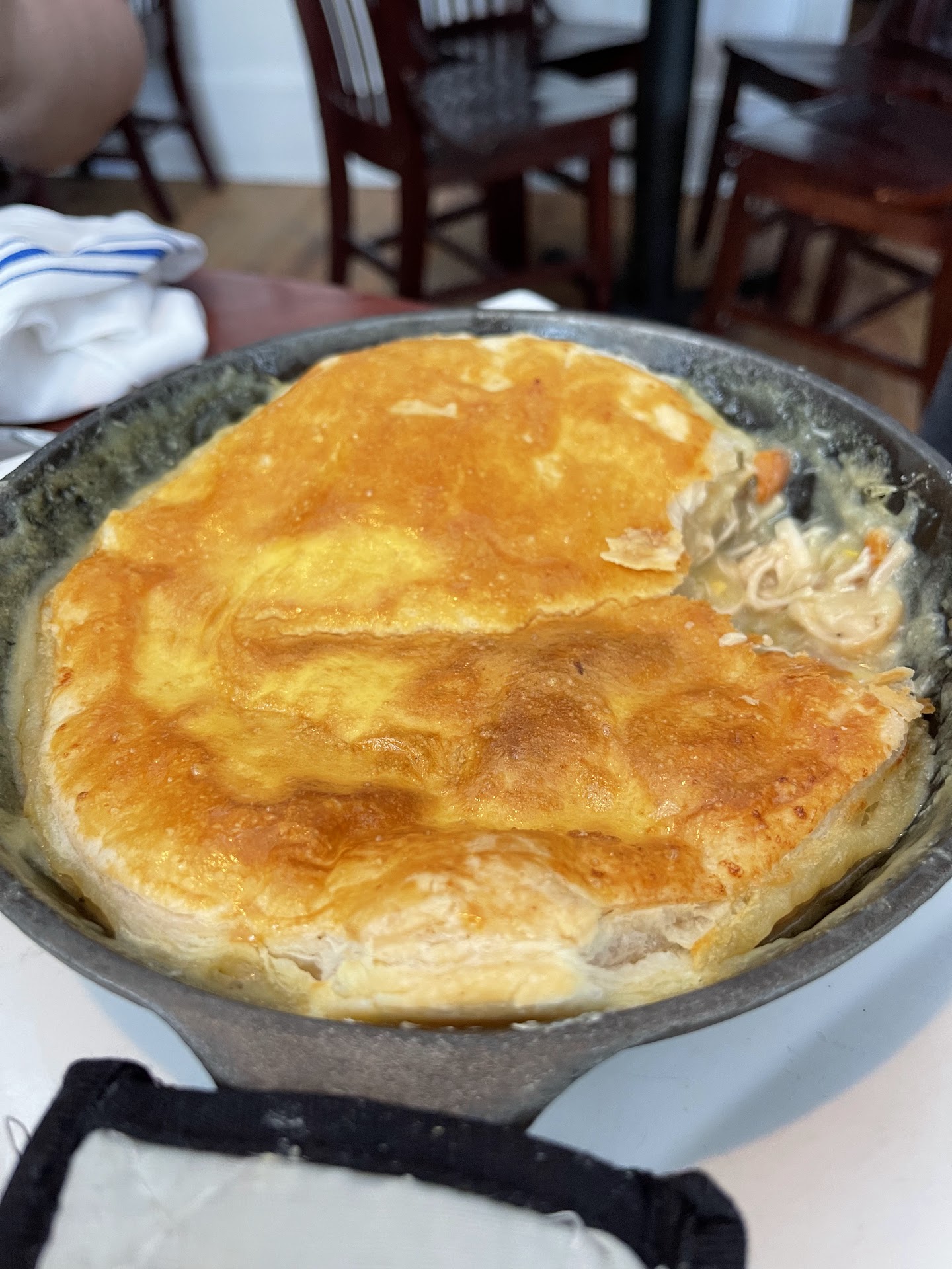With that said, we decided to come back for Friday evening dinner reservation to celebrate our anniversary. Now was the ultimate test. Now, we’re here in a packed house (to COVID standards packed), with several people waiting. Will the food be as well prepared in this type of setting??? Oooooohhh BABY!!! We had the French Onion Soup (one of the best I’ve had in years), side salads, oysters in a 1/2 shell, shrimp cocktail and for our entrees we had Filet (again... my wife is the kind of person that order Chicken Parm all the time because it’s “safe”.... anyway) and I had the white truffle ravioli. Not only were our meals almost flawless, the entire Serving Staff should be commended. They really are the backbone and face of a successful restaurant and you can tell Porters prides themselves on that.