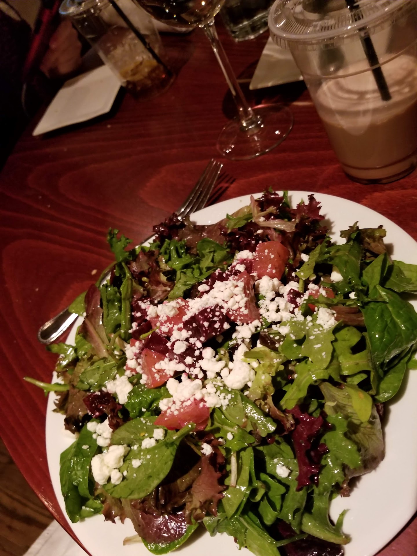 The restaurant is beautiful, in a rustic way, wood floors, wooden beams. Etc