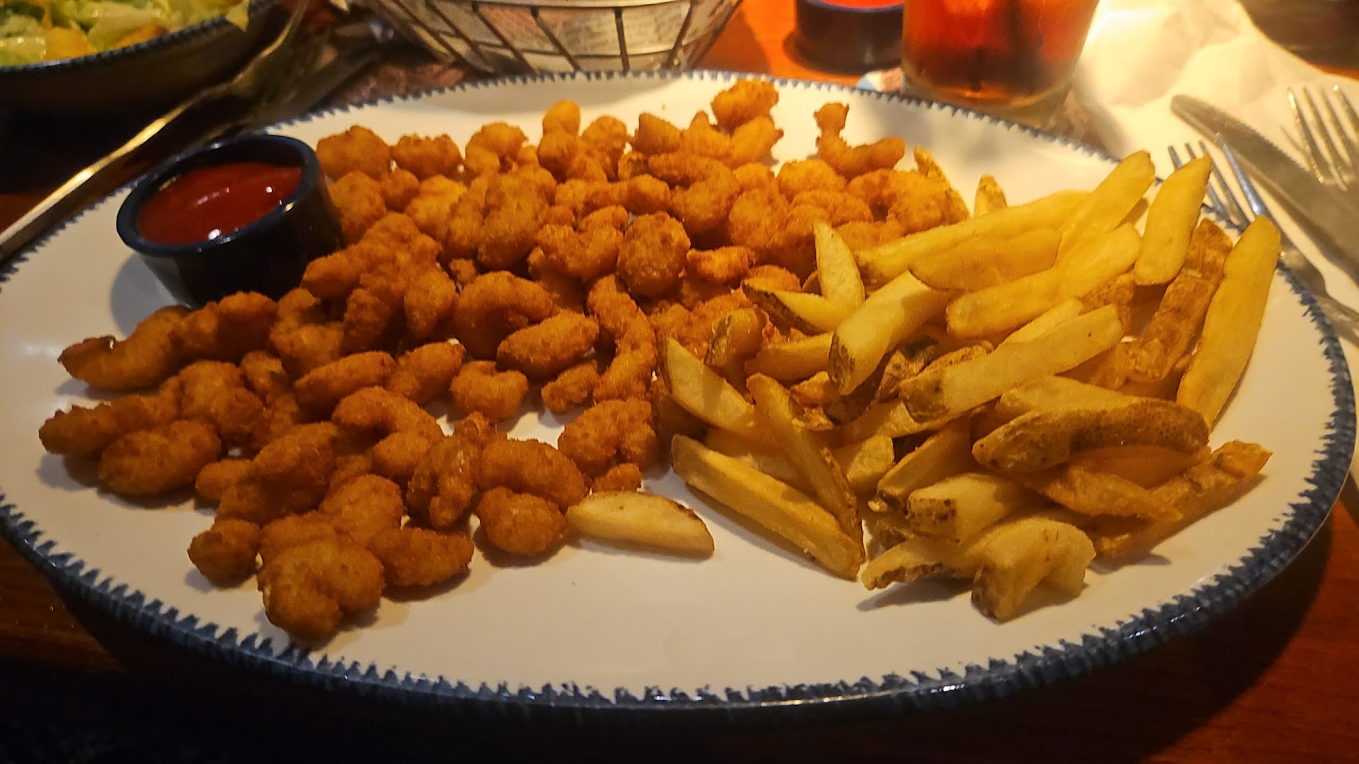 Dinner was quite the sharable feast as well! Ordered the Salmon New Orleans which came with 2 sides. I opted for the steamed broccoli & a fresh garden salad tossed with French dressing. The salmon was broiled with Cajun blackened seasoning & topped with shrimp & tomatoes in a delectable, savoury & creamy Cajun sauce. The salmon was cooked to perfection with a nice temperature of a cool, pink center. Next was Walt’s Favourite fried shrimp. It has always been a fave of mine here as well and it did not disappoint in the least! The shrimp was tender, beautifully breaded, clean tasting & uber delicious. It was paired with the famed Red Lobster thick & creamy tartar sauce.