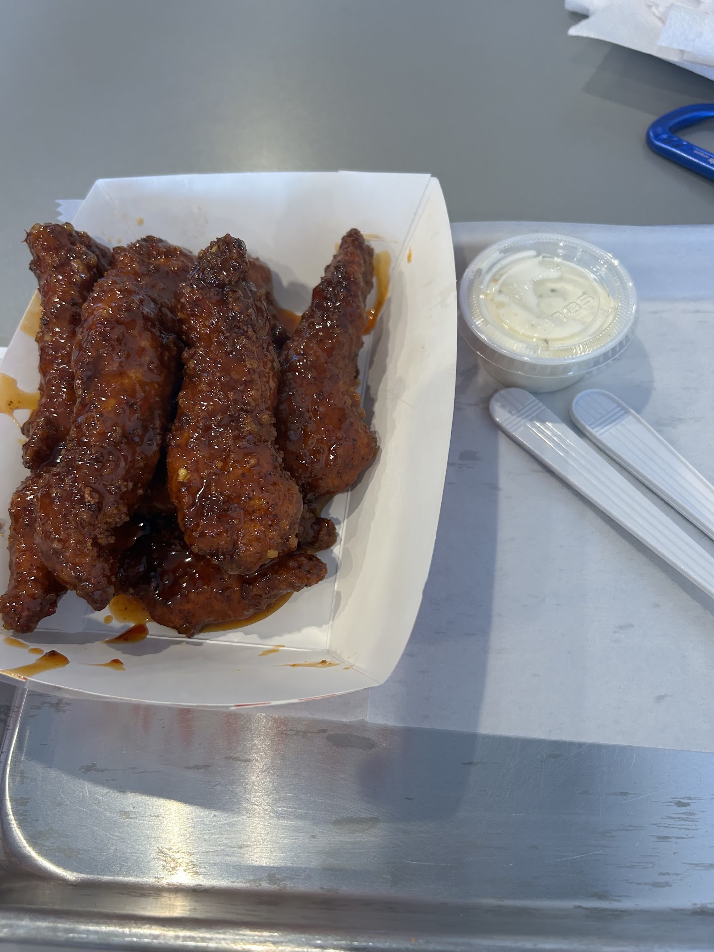 Read moreWe went there for lunch. As others mentioned the seating is limited so groups with more than two people will have trouble sitting together if the shop is busy. We ordered wings on the bone and tenders with fries. Overall it was ok. The chicken was cooked well, the skin was crispy. The batter on the tenders is unique and not everyone will like it. There is no dry seasoning options which would have been nice to have, only saucy choices or plain. Order sizes are limited. Minimum is 7 piece, except for the lunch special. A 3 piece or 5 piece standard option would be better and perhaps a little cheaper. Fries were similar to Wingstop in flavor. If I was in the area I may go back, but I would not travel out of my way to go there. Choice between Wingstop or here for wings, I would likely go with Wingstop, just more flavors and better price options...