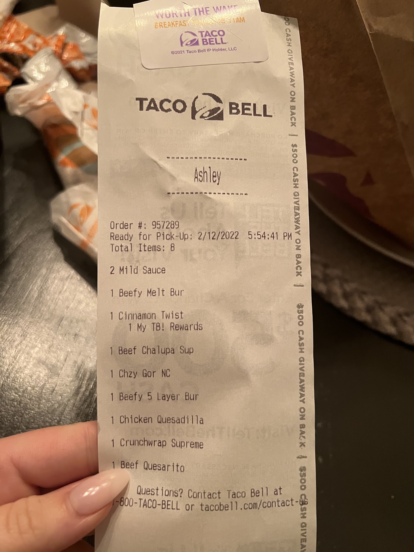 Read moreAbsolutely the worst fast food place I’ve ever been too. Last THREE times I waited inside for over 28 minutes for $12 worth of food. Second time I asked for refund and left. The manager had the nerve to not only take another 10 minutes to give me my refund but had the nerve to tell me “maybe you should have went through the drive thru” there’s absolutely not one person that can speak English in their like 70% of the time. One guy literally waited 16 minutes just to order his food bc the girl at the front didn’t speak English and could not help him. Then they overcharged the guy on top of that by making them supreme tacos without sour cream and he ended up paying $16 and change $13 worth of tbell. I literally put his order in the correct way and it said he paid 4 dollars too much. Usually when you wait 20 minutes they offer your meal for free well when your dealing with a person who doesn’t speak English and shouldn’t even have the job is not going to offer you anything but attitude and unprofessionalism. Fast food whether there’s 10 or 30 ppl there should never take over 30 minutes. And even when you get the order it’s wrong. And then tell you your wrong it’s in the bag when it’s clearly not. If ICE came to this establishment there would be zero ppl left to work there. I honestly don’t even think I could get a job there bc I’m white and don’t speak Spanish. Welcome to Taco Bell...