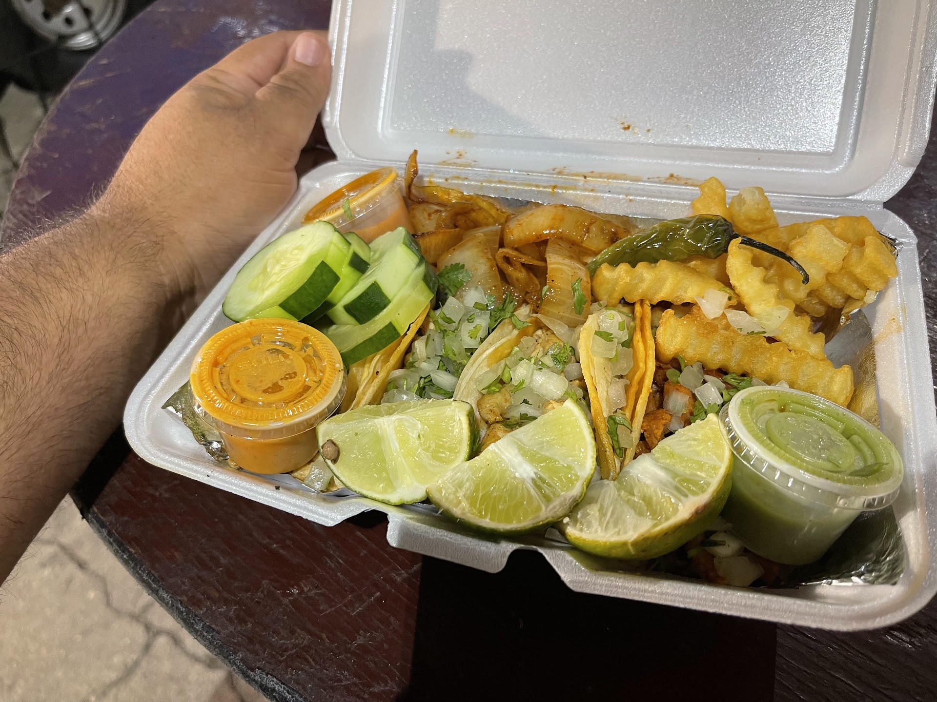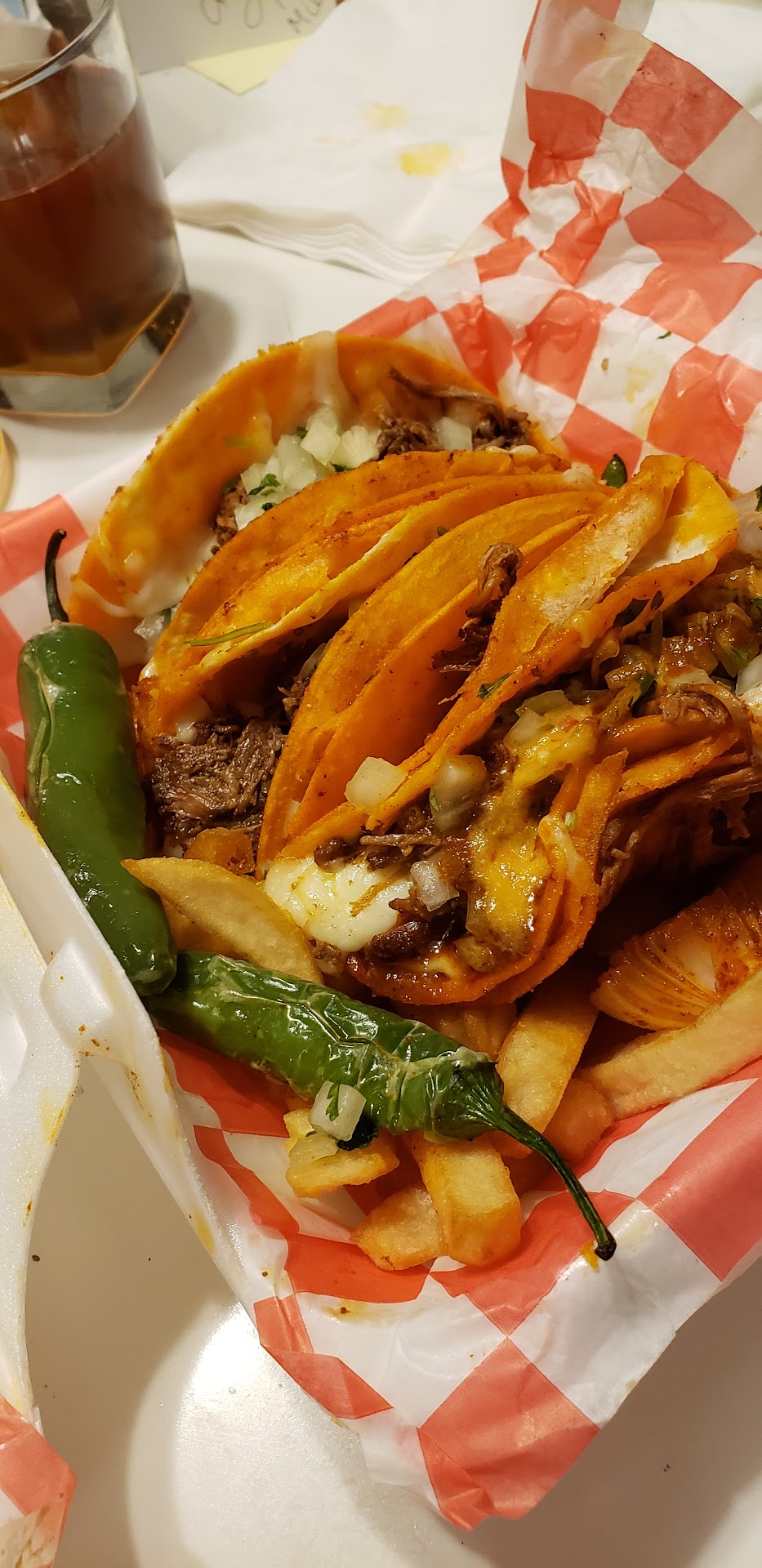 Read moreFood was dry. The birria tacos were dry and didn't come with Consomé liquid dip like they're supposed to. The Carne asada taco meat was stringy. And WHO PUTS LETTUCE IN A CHICKEN QUESADILLA so you can eat soggy wet lettuce in a chicken quesadilla that's falling apart because it's all wet and soggy!!!!!!! 🤢🤮....... And all the extra fries I didn't ask for...that they gave with every single plate.....SUCKED!!!...