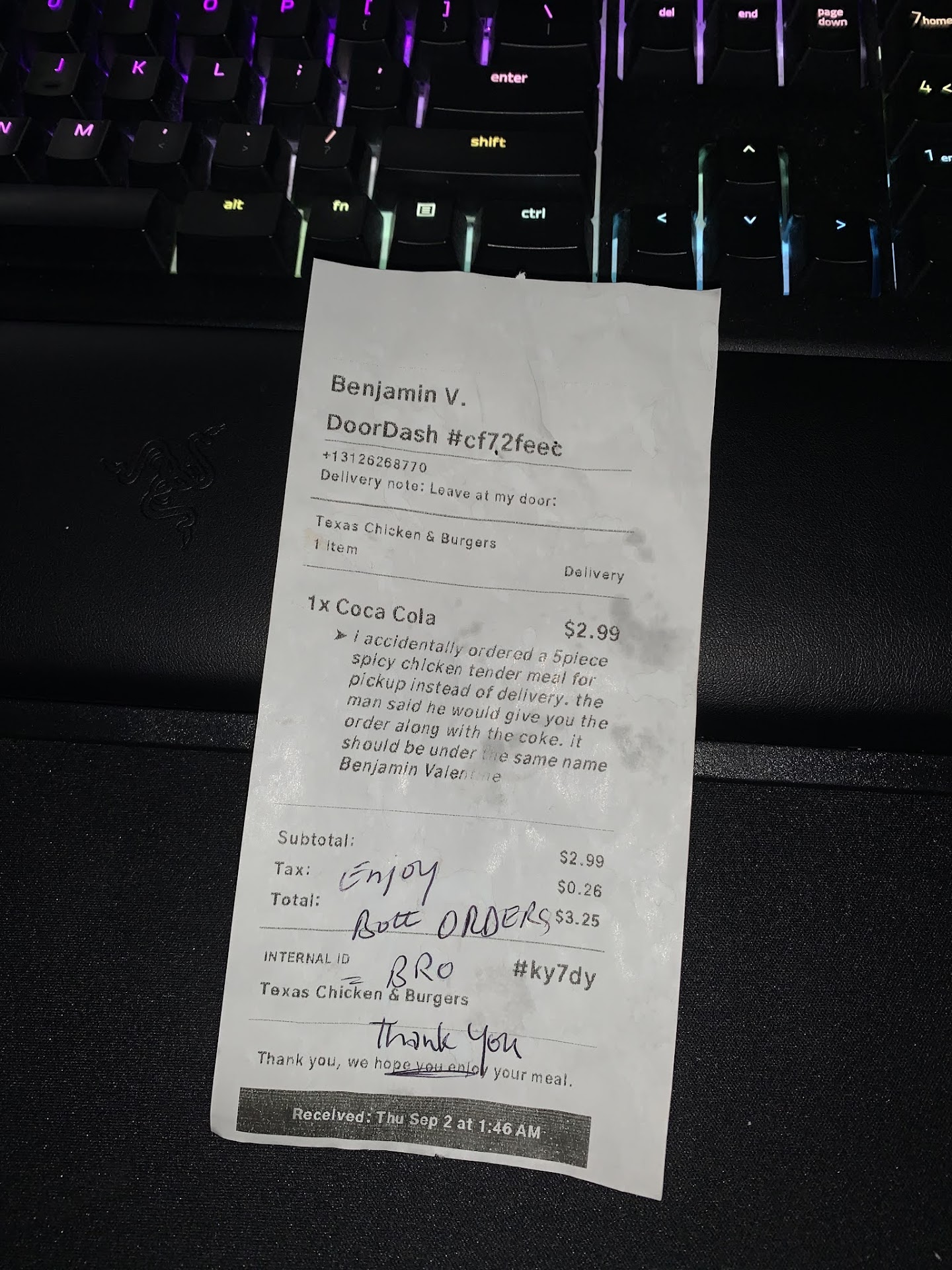 Rahman told me the person who picked up my order showed them a receipt, despite my own eyes seeing another mobile pickup customer not providing their receipt for the pickup. I wasn't even asked for my receipt at first, only the order name. Rahman insisted this person who picked up my order was a longtime customer who always gets the same thing, so I asked if he had the same name as me. Appearing to be caught in his own strange lie, Rahman said he didn't know this customer's name, but that he knew this customer and they had a receipt.
