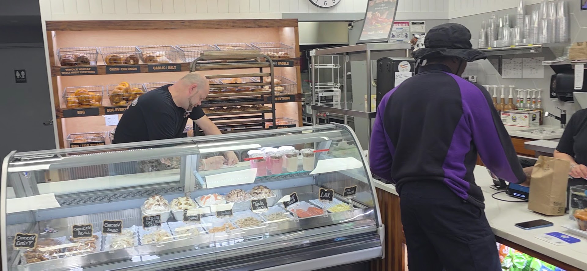 So I have to give it a one star although the food was good the place is clean and the service is friendly. The man didnât change his gloves, which means he has been working with the same pair of gloves all morning. I observed this man handle the staple touching the underside, and I was able to clearly see was dusty and dirty, touching the register, fiddling through the drawer, staples, and other material Dirtiness in cross-contamination and bacteria all over the same pair of gloves then I witnessed him help two additional customers, and still not change the gloves and have the audacity to pick up another bagel then put your entire glove on top of it while youâre cutting it in half and buttering the bagel. I see this from time to time some people just donât have the knowledge that you have to change your gloves between each order. Iâm sure they wouldnât appreciate if I stuck my hand in a pile of dusty, dirty, cross-contamination handled mechanisms, touch the dirty registering than stuck my finger in your food. You have to think and get educated, take a board of health class. The BOH can and will fine you. And to top it off of course he took napkins out of the dispenser with the same pair of gloves on it and put it in my bag. Of course I had to take those napkins out and grab new napkins because thereâs nothing but dirt and dust all over those gloves that I would now directly wipe my mouth with. The stupidity is just beyond belief. Change your gloves. Behind him there was about 12 boxes of gloves, but you still want to use the same one pair all day long. If you donât have a budget for gloves and you need those 12 boxes of gloves to last you for two years because you want to use just one pair a day, then stop serving food and get out of the business since you donât have the finances to stay in business under the board of health requirements. Or the other option is if you cannot afford to use more than one pair of gloves per day, then donât use gloves and wash your hands between each order, and if you canât afford the water, then donât be in business. Or better yet wash the gloves between each order. you canât stick your fingers everywhere all over dirty services left and right and touch peoples food. grow a brain...