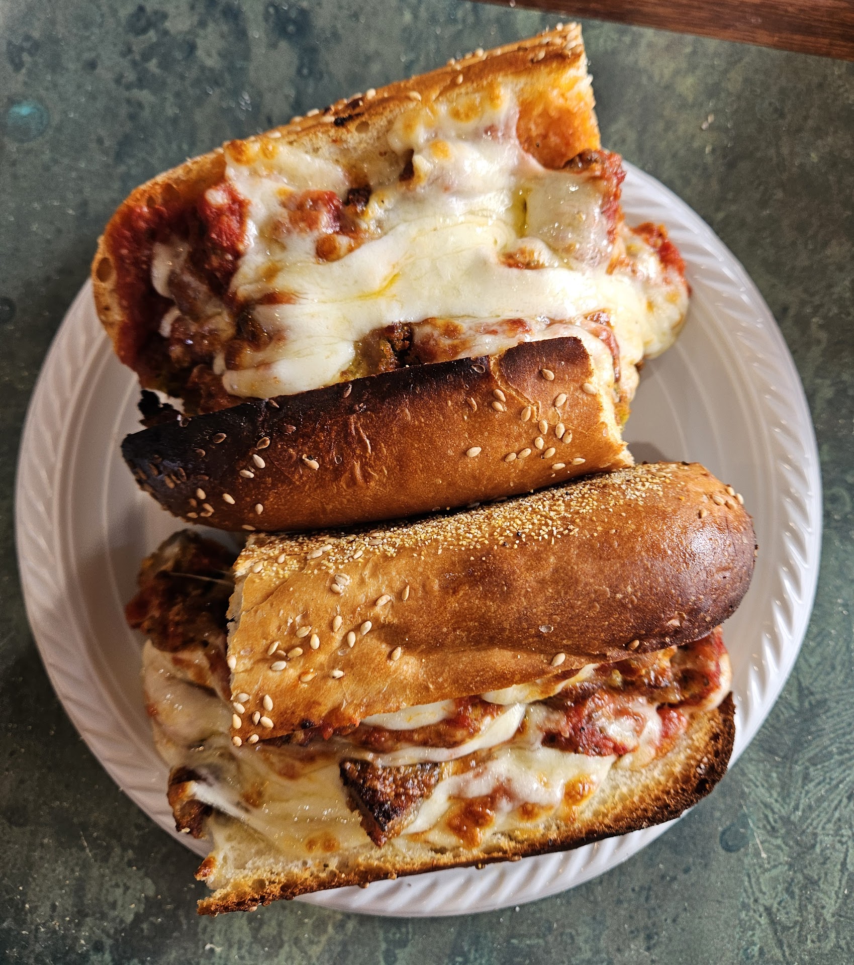 Stopped in for lunch, as we were driving by. Appeared clean, but in need of an update. Around 2:30 on a Monday, it was fairly busy. Friendly counter staff. Decent amount of pizza options at the counter. My husband got a regular slice and a veal parmagiana hero. He enjoyed the slice with a nice crunch to the crust and not at all greasy. He also liked the Veal parmagiana hero, perfectly well done as he enjoys it. As I tasted the Veal, it was chopped into little bites, a generous portion, and flavorful. I had the deep dish regular slice. Again, it was not greasy at all, and the cheese pull was incredible. I bit into a nice, soft layer, and then the crispy crunch of the crust. I also tried a mozzarella stuffed garlic knot. Again, great cheese pull. The garlic was powder dusted on top and was a little burnt tasting, but still a solid knot. Overall, it was a...
