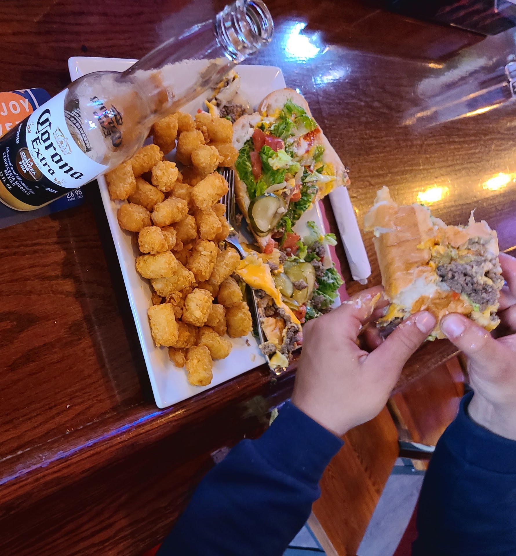 Bill got a steak sandwich and he said it was really good. He said the steak was nice and tender.