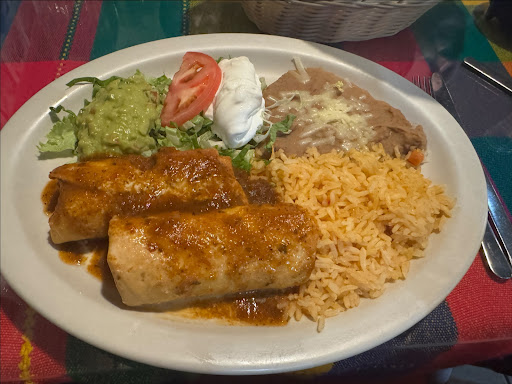 I started off with a strawberry margarita that tasted watered down, the table was sticky and uneven, and the food was sub par. I got the chicken chimichangas, this came with guacamole which was like a green goo almost, it had no distinctive features of being fresh, there was also some soggy plain yellow rice, and refried beans that also just looked like it was out of a can.