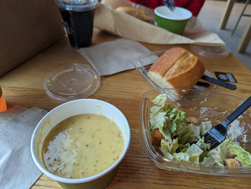 Read moreUnattended. Dine in was a poor experience tonight. Nobody was available to ask questions when we needed help with a gift card not working, a menu/allergy question. After far more work than it was worth we got an order done and hoped that the alright information somehow was seen by the food prep people. The food was fine properly, although the chicken noodle soup was almost lukewarm and not tasteful. I would have taken it back and asked to have something else but nobody seemed to be working there. Then during our meal the overhead music suddenly became very very loud, then soft and it happened again thirty seconds later, as if some child were playing with the volume on their parents stereo. All in all disappointing and sad to see that this store has zero customer service and seems determined to chase their remaining customers...