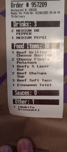 Total waste of time and money. I rarely ever eat fast food personally, however I get food here for my brother on occasion. He is practically a racoon, he's obsessed with junk food and never complains about anything. This place is such a poorly run dump even my brother who will even eat tv dinners said this taco bell sucks. On the rare occasion I've ordered it for myself I've been disappointed and just threw the garbage out. The order accuracy is nonexistent through the app or drive thru. The quality of the food is even worse now. The amount of meat you get is shrinking even though the prices are going up. The drive thru wait time is horribly long. The extra sauces you pay for never end up on the food. The sauce packets you ask for never end up in the bag. The drinks are never completely full and often are off of calibration so it's flat or they're running out of syrup so it just tastes like seltzer. The lobby is disgusting and dirty. The breakfast hashbrowns are always hard, bitter tasting like old oil, and burnt dry. Get your...