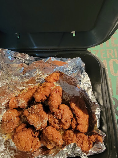 I saw MULTIPLE staff members either wearing masks improperly or as chin straps while standing over active fryers and other people's food, and these weren't momentary or brief instances of staff lowering the mask to catch a breather. I've worked in fast food, and can appreciate how hot it gets on days like today- I can't even begin to imagine how much more difficult is to work over a fryer with one of those masks on. If that were the case, I wouldn't complain- but it was the entire time I was in the restaurant. The only 3 staff who were wearing masks properly were the young woman at the register, the young man working the pizza oven, and the young man who gave me my order. When Staff did adjust their masks (still worn incorrectly), they did so while touching their faces with gloves on. Not a single one changed their gloves after doing so- they simply went back to work. That's unacceptable even when there isn't a global health crisis, and a health code violation. In the current climate, I found it extremely unsettling. If there was a manager in the building, he/she was doing absolutely nothing to uphold/enforce any sort of safety standards, and was completely content to allow the restaurant to run at half pace. I can handle uncooked pizza, cold food, or long waits for delivery. What I can't accept is the complete lack of concern or awareness for the health and safety of not only other staff members, but your customers. I will not be patronizing this business moving forward.