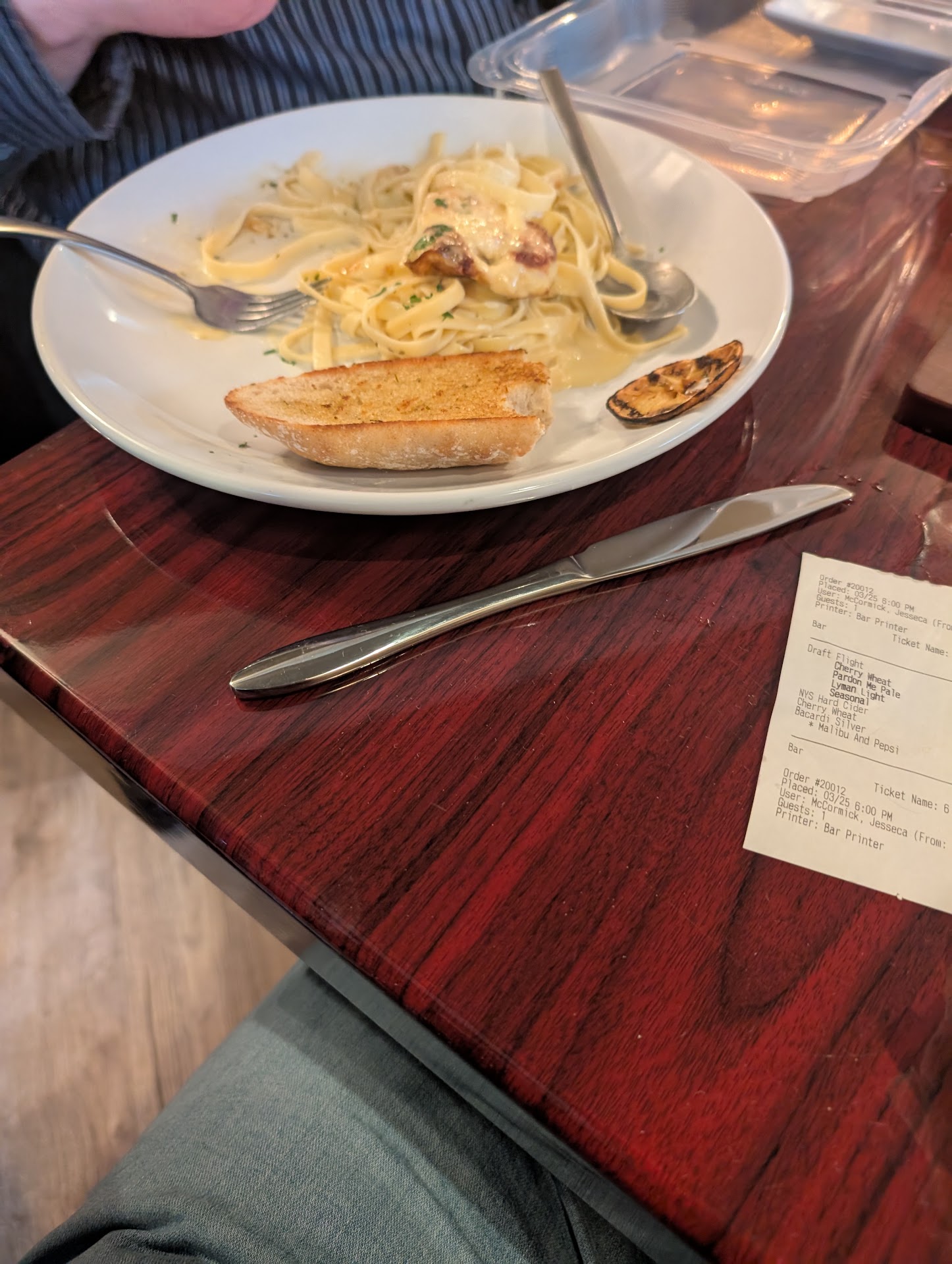 The staff were all friendly and welcoming. We chose to sit in a booth in bar area. Waitress took our order for drinks and dinner. Another person delivered the food. There wasn't any salt or pepper on the table. We did not see our waitress again until we were almost done with our meal. No checkin, no water offered or offer if we'd care for another drink.