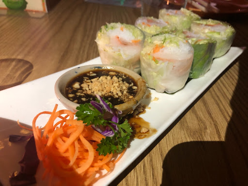 Onto the fun parts: my favorite dishes! I ordered the fried veggie spring rolls to start. They were some of the best I have ever eaten and the sweet chili saucy accompanying them was a perfect addition. I'll add that the prices are quite reasonable here. While you don't get enormous amounts of food, you also don't need a magnifying glass to see your meal. And you won't go broke if you add on an appetizer or special cocktail (they have some good ones!) The portions are fair (some members of our party even had leftovers to enjoy for later) and the quality is great. One member of our group ordered the fried taro root, and I got to sample it. I loved it (I might just make a meal of several appetizers on my next visit). Those wanting something a little lighter should try the summer rolls. They are a more health-conscious choice brimming with herbs and flavorful vegetables.