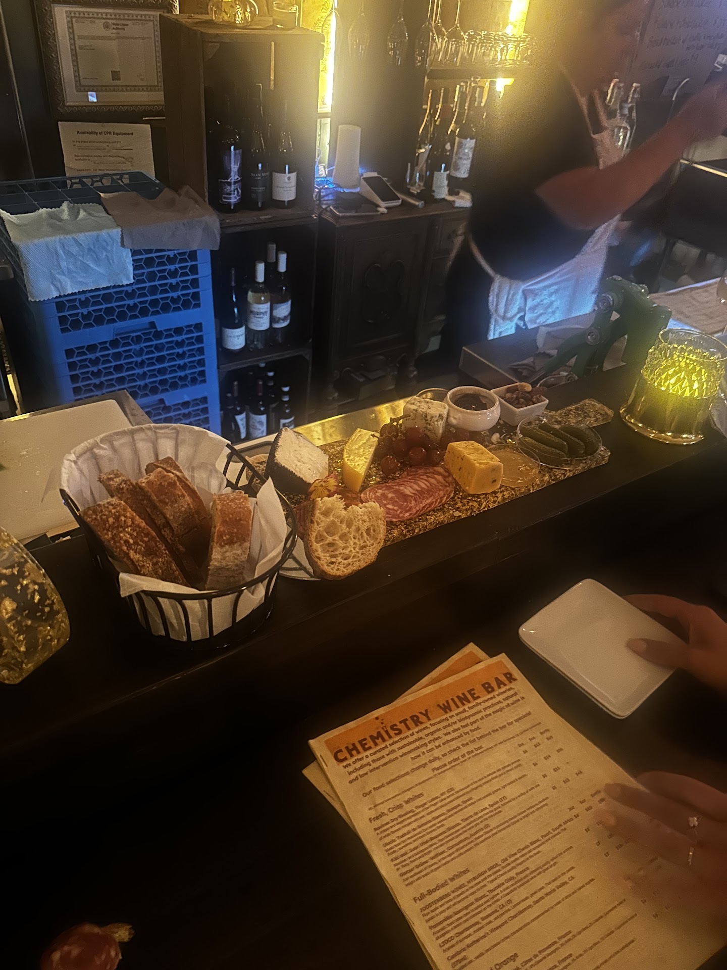 Stunning! Perfect spot for an evening of drinks with friends, date night, etc. It's a classy bar with a cozy vibe. There's a great wine selection, no matter your taste! The attention to detail is eye-catching... everywhere you look, there's something beautiful to see. I love the ambiance, so romantic, with a hint of old-time sofistication that really makes this place the perfect spot to start, spend, or end your evening! We did not eat here. W stopped in for after dinner drinks, but the owner told us an updated food selection is in the works! Stay tuned! The drink prices are more than reasonable! Heads up, the hours are incorrect on Google. Here's the updated hours: (as of Nov. 2024) Wed&Thurs: 5-9 Fri: 4-10 Sat:...