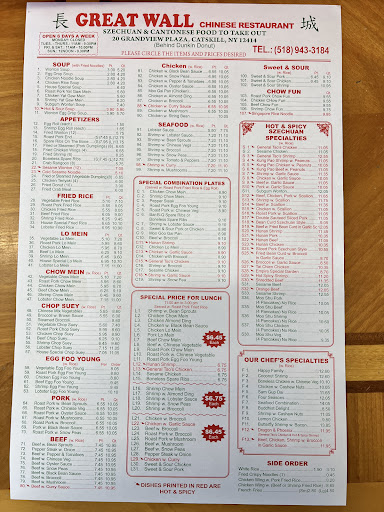 Read moreGreat Wall is the best Chinese food in Catskill (sorry Chopstick). Granted I've been eating there for 30 years and am a bit biased but there's nothing on their menu I don't like. My particular favorite of late are the sesame wantons which are perfectly spicy and delicious. Lo meins are all great, chicken and broccoli is my standard go to and the eggrolls are perfect. On the negative side it's time to go back to the full open front of the restaurant guys. That little hallway gets crazy crowded when you're standing there waiting to pay and pick...