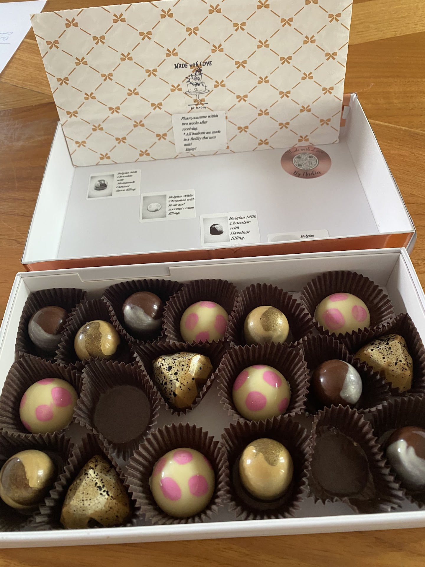 Read moreReceived a beautiful box with a pretty bow as a gift. I opened the box and discovered exquisitely pearled chocolates... Too pretty to eat, I thought. Normally, pretty confectionary is not really all that tasty. Not these! Oh my, the rich creamy taste of these European chocolates was every bit as amazing as the way they...