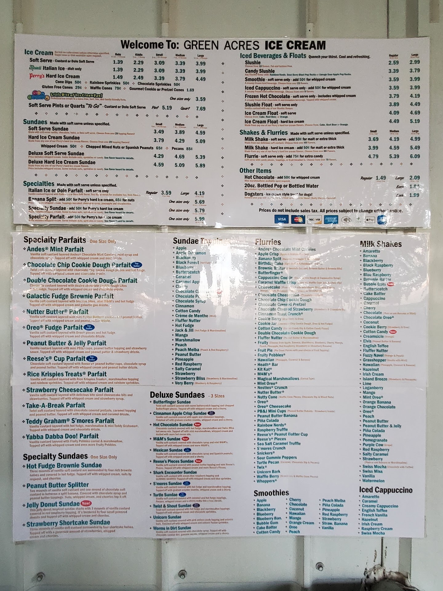 Read moreO5/2018 - Green Acres Ice Cream has lots of ice cream flavors to choose from in hard or soft serve, Any flavor of milkshake you can think of from your choice of hard or soft serve, even has several choices of Frozen yogurts, sherbets and many more. Definitely offers an impressive Menu compared to others. *Not just a ice cream shop, Green Acres Ice Cream has an Awesome miniature golf course, driving range and even have family movie nights where they project movies against building. It doesn't get much better then that, kids love it. 07/2019 - When from 5🌟 down to 3🌟 Not the friendliest cashier for working at a ice cream shop. Cashier was annoyed when my 6 year old daughter changed her mind after taking our order. One of the other girls not on regester was helpful and on her game. I ordered a strawberry banana smoothie and it was awful, the worst smoothie...