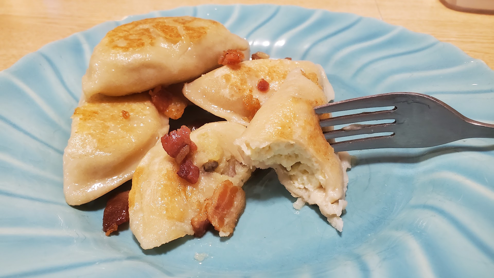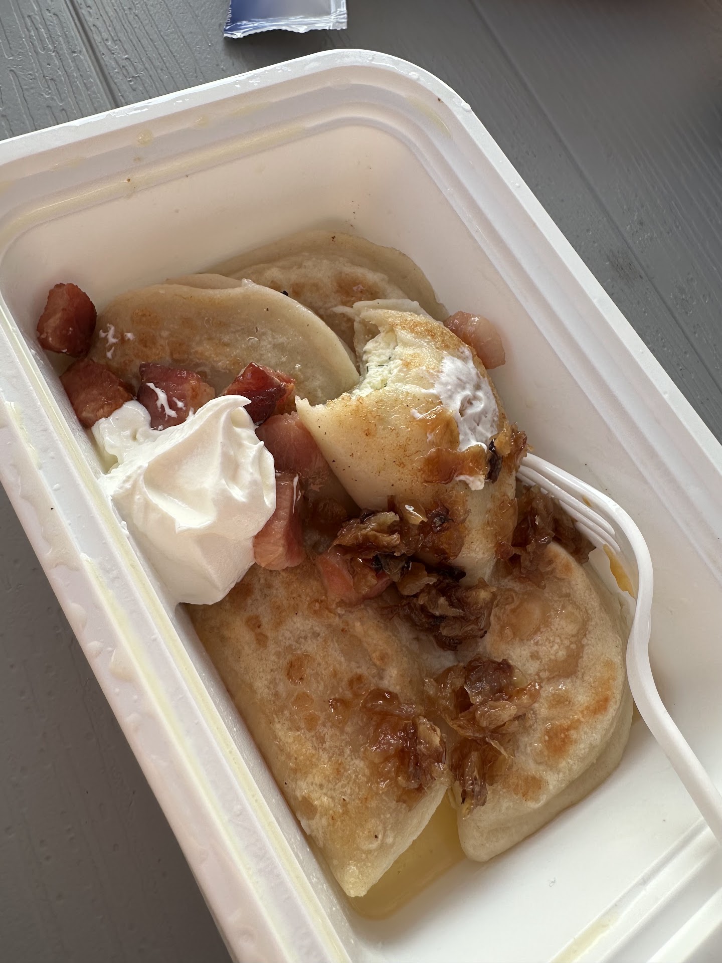Ā Ā Ā Read moreThe pierogis were delicious. We got potato & cheese as well as savory farmers cheese & dill. My mom got the liver ones, she said they were good but I just donāt like that taste so I wouldnāt ever get them myself. The pierogies were awesome! As a Ukrainian that makes her own pierogies, I will definitely return for these. However we also got one of each of the cheburek. Both seemed undercooked. The dough in the center was too soft and underbaked. (Picture attached) They werenāt crispy like in their ad. We asked for a new one so they remade the one we first opened and refunded our money. The one that was remade was definitely more crispy and tasted much better. This is why they still get a 5 star review from me! Oh we also got the raspberry farm cheese dessert and...