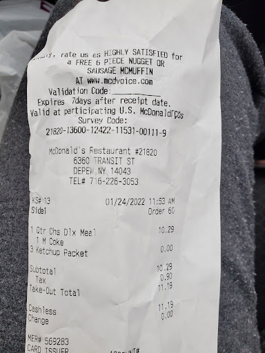 Read moreI used to go to this location all the time because It was on my way to and from work. I went through the drive-thru and ordered two Happy meals and two McChickens. I was given my two happy meals and was told to have a good night. I asked the gentleman who gave me my food if the McChickens were put with the Happy meals. He seemed aggravated that I asked and told me I didn't pay for two McChickens and asked if I wanted to order two. I told him no I ordered them at the drive-thru. He yelled at me that I didn't pay and he would get them my receipt to prove me wrong. The other employees there were staring. He then realized I did pay for them but seemed mad that I even questioned anything and angrily handed my receipt to me. I was trying to be nice about the whole thing because I worked retail for 6 years so I know what it's like. I Just wanted what I paid for I wasn't asking for anything extra or trying to cause an issue. He likely was just having a bad day so I don't want him to get in trouble, but hopefully...