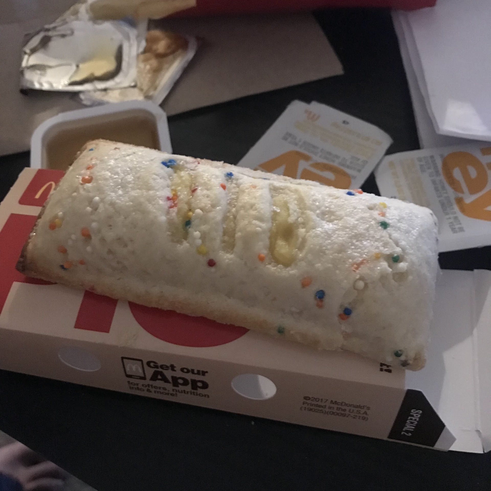 I am not one to usually get McDonald’s because I want to, but more because it’s quick, cheep, and open late, and today I was tired after work and just wanted to get something to put in my stomach and then go to bed. I decided to get it a little through my long drive home, so this McDonald’s was the closest, and I have never been to this one before. At about 10:30p today, I pull up, give my usual order, and when I pull up to pay, the guy asks for a few more seconds before taking my payment, to which I get a little concerned that something is wrong, but I wait and then pay and pull up. Then, one of the guys at the second window informs me that the food will just be a bit and asks me to pull up to wait, which I do. At this point, I am very concerned there is some sort of problem or that my food will take a long time (but I would wait anyway, as I have no better option), but only a minute later, the food was brought out (and it took me a little bit to notice the worker standing awkwardly outside of my car, and I apologize for this!).