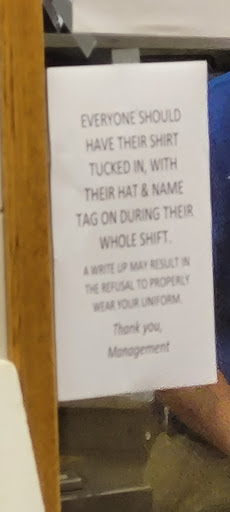 Read moreSo the pictures attached are what is being posted in clear view of customers from the counter. This is absolutely not the way to handle disciplinary issues, and any manager with any sense knows that. This goes to show how the employees are treated here. This is terrible leadership from everyone involved, and is clearly coming from corporate, and an area/district manager, down a chain of command to store management. It's no wonder this place can't keep any employees or managers around, and are always short staffed. Hence there's only 3 total people working during a busy peak, and it then takes 20+ minutes to receive what was ordered a lot of the time. Numerous other reviews have said the same, and some other restaurants are NOT this short staffed. Maybe the corporate and district/area manager should worry about those issues instead of someone's shirt or name tag. Also, the flies at the pop machine up front are gross. But how does the company expect anyone to get to it when there's 3 people working????? Incredibly mind boggling how whoever is in corporate/district management here...
