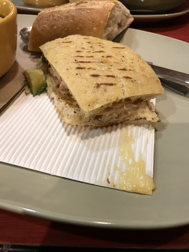 Read moreReally disappointed the last few times that I've gone to this location. I order from panera pretty generously. I spent $20 this last time for a soup and sandwich with delivery and the cheese on it had mold on the side, the soup was half filled (of the already SMALL portion you get) and i ordered my sandwich without the signature sauce because im allergic to mayo, and of course it had the sauce on it. When I called the woman asked what was going on, I let her know what my issues were and she asked if i could hold, she then started taking someones order and must have forgot about the phone because she was then talking to someone else and was talking about how I was just calling to complain to get free food. I immediately hung up because my goal is to NOT get free food. I'm so baffled, so here is to my $20 lunch of a half a bowl of soup and a cookie....