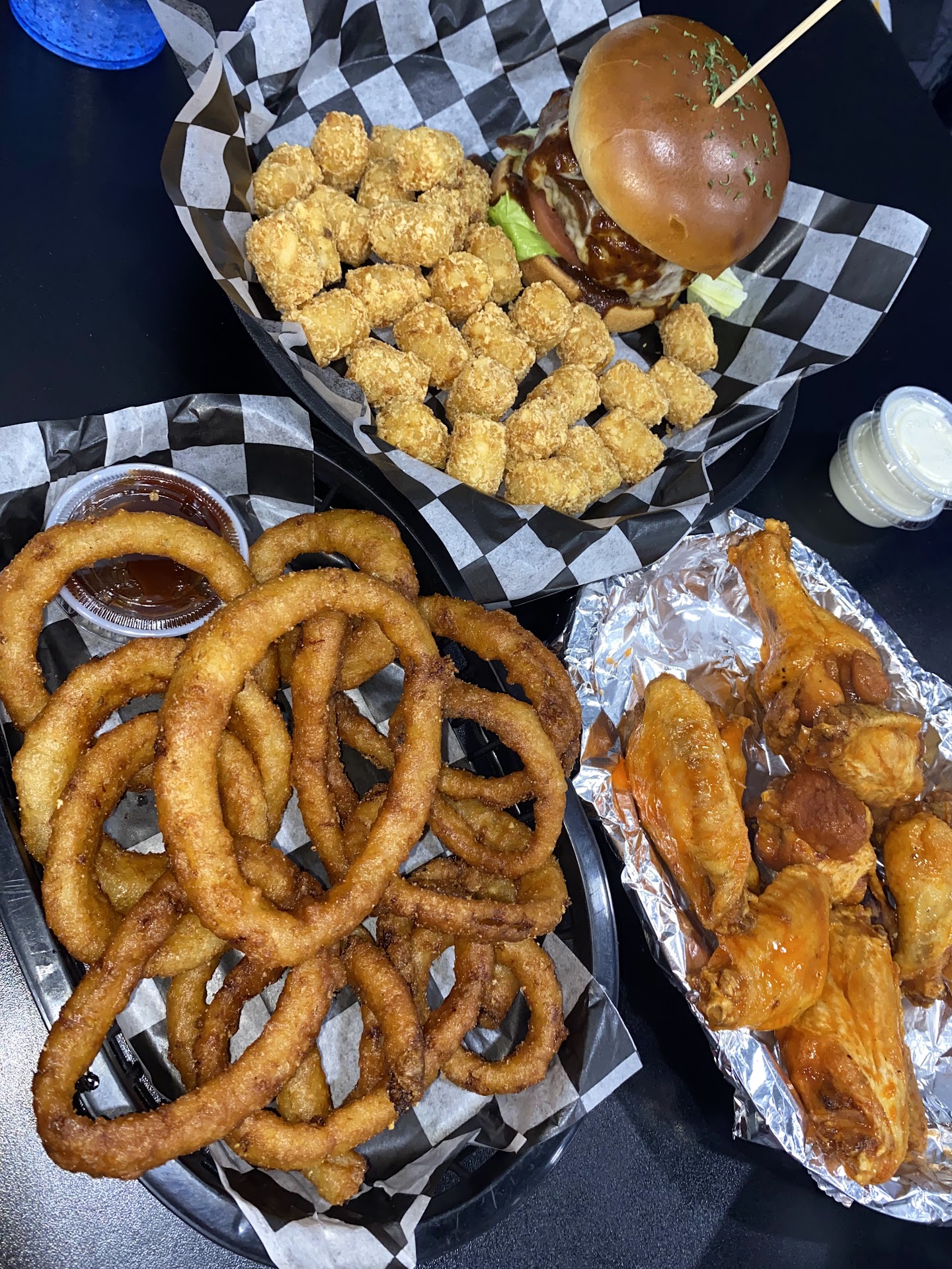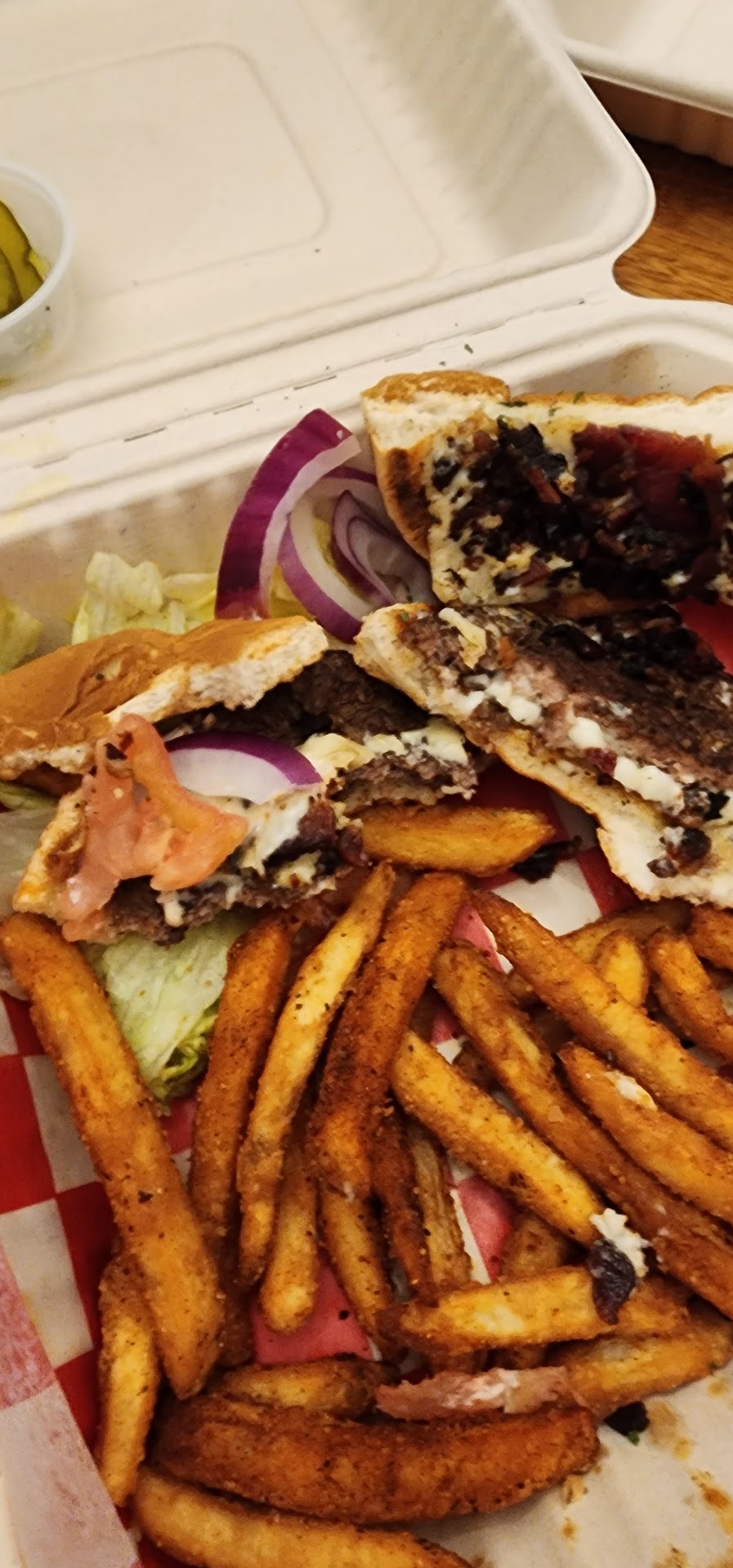 Read moreI will say this to start: the food tasted great, the fried stuff was on the overcooked side but overall it was great. Here's the issue: We ordered two 1/4 lb stuffed burgers with tots and onion rings and one kids "mini" cheeseburger through Door dash. When it arrived, we opened the boxes to find all 3 burgers were the exact same size (the size of the kids meal burger - super tiny!). This threw us for loop as it literally looked like we ordered 3 kid meals. At first we thought, well maybe because they are stuffed they really are 1/4 lb. But if the 1/4 lb burgers are the same size as the kids burger, why advertise them differently for different prices? Also, a 1/2 lb burger cost a whopping $5.25 more, which made us think we were ordering regular sized burgers. To top it off, we only received a handful of tots. For the price paid, this was not what we expected - and it's very, very, expensive. I would not recommend ordering through Door dash unless you really know...