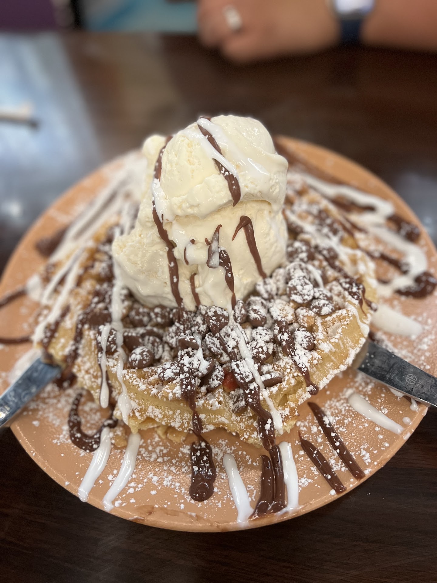 OMG. So fiancé and I decided to stop for dessert for date night and I don't think we've been so underwhelmed in our entire lives. Yes the place looks cool, that is the 1 star. Our servers looked like they would rather be getting a root canal without anesthesia. Like anywhere other than there would have been favorable. It took a considerably longer time than one would think for someone to greet us, with luke warm water and no smile. Which only solidified our previous thoughts that no one in their right mind wanted to actually be there let along work there. The prices were freaking outrageous. It was $20 bucks for a waffle and a scoop of ice-cream! The waffle was as plain as plain can be and the vanilla ice cream literally tasted like frozen milk. For some place that claims to have small batch home made ice cream you might want to check in with your "chef" to see if they understand what flavour actually is. We could have gone to Wegmans, spent 4 bucks on eggo waffles, 5 bucks on a half gallon of ice cream and 5 bucks on a pack of oreos and had the same dessert for a week. The owner should be ashamed of themselves for a number of reasons. Firstly, the cost of their "experience". I would have rather gotten a colonoscopy. Second, was their staff. They looked like a bunch of dolls with the gleam of life stolen out of their eyes. And Third, their product. There was absolutely nothing that set them aside from anyone else on the planet.