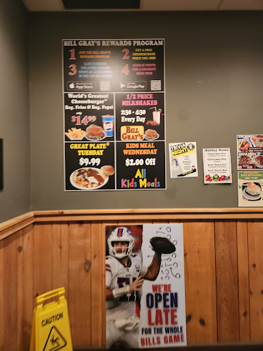 My mom wanted a fish fry from this bill grays in north chili and Paul Rd., I'm like why bill Gray's which I never ate, or order a fish fry from them ever, I'm like let's go to Davies in Greece, she insisted this bill grays since she lives on Brooks Ave near the airport, we gets there and really there's social distance, five man crew ibehind the protected shield order two fish fry,meals, then two people behind me comes in order their meal the same but they ate in my was to go, they received their meals before me which was the same but they ordered drinks with theirs, now they got their meals and now other patrons comes in young people from the neighborhood they place their orders gets served and leave, now a woman with kids comes in for ice cream comes to the counter where it says pick up, I say oh the ordering line is over there. Meanwhile I'm still waiting, the point is I wouldn't refer anyone to go to this bill grays or even send a dog there for service or to purchase a meal, to pay 30.00 dollar for dry coleslaw, and the mac salad was nothing moist about it like cook noodles with a dab of mayo, the fish was one long strip of haddock that wasn't a haddock, nothing but breaded no fish what so ever. If I knew I was buying bread, and dry no season salads, I could had brought my own fish and cooked it and made my own salad for less then that, at least it would had been worth my money with satification, wasted money on food that I didn't eat, Garbage it went, wouldn't had pureed it for a soft diet either thumbs down for your business and fish fry meal. Not worth 15 dollar a meal. Homeless people wouldn't...