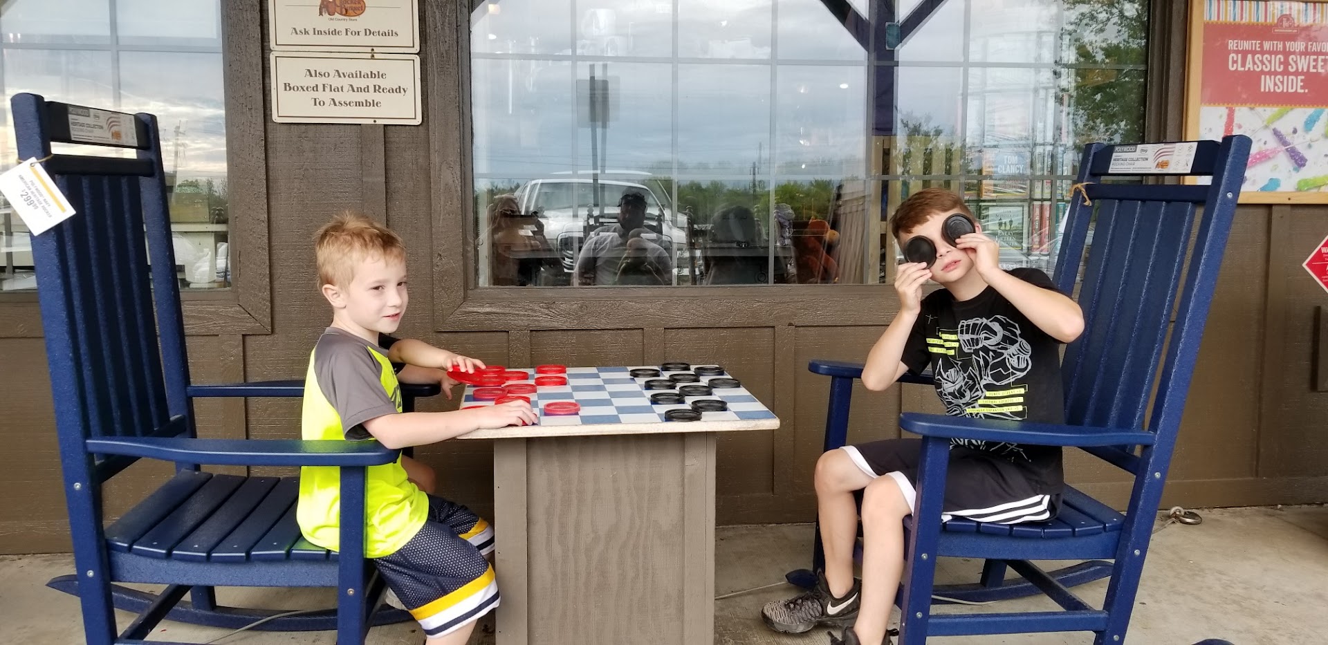 I brought my kids as a post Easter late lunch early dinner. Service was efficient, and friendly. The food came out pretty quickly, it was a Monday afternoon so not busy. My son had steak and eggs, which he enjoyed but the steak was unevenly cooked and extremely rare. Teenage boys aren't very picky and the steak was consumed before I could even comment! My daughter had the Oreo Stuffed Cheesecake Pancakes. We each tried a bite as well. Pure sinful chocolate cheesecake delight! I recommend sharing as a dessert. They are so rich, my daughter could only eat one. I had the Saucy Chicken Sandwich with Tennessee Hot sauce with steak fries. I should have tried the sauce before pouring over the chicken, it hits you Smokey, bbq, then the hot! I love spicy and hot but this was different, and has the highest calories of the sauces. Chicken hand breaded with the perfect crunch to chicken ratio. Loved the sandwich pick with iconic barrel on top! Steak fries served hot and crisp added some pepper to give them a bit more flavor. Love the old fashioned ambiance and the Cracker Barrel store! They still have the checker boards my kids used to play as children. I hope with many Cracker Barrel's being modernized they keep the old fashioned feel, keep the nostalgia alive!