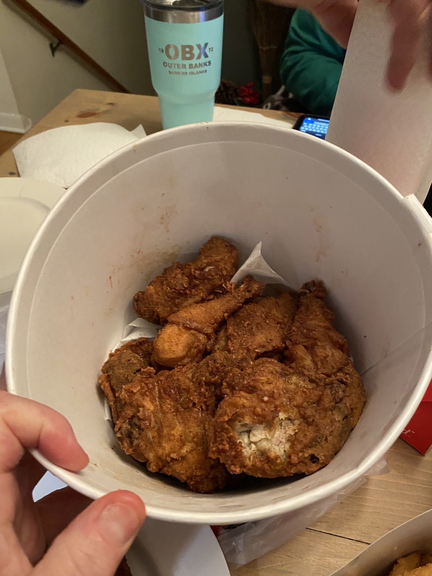 Read moreI rarely give 1 star. I considered being kind, but I'm tired of being complicit with where customer service has gone. It starts with the ordering process. The last time I went to KFC, the order honestly took almost 30 minutes to be ready. Some excuse about the oil or something. It was during a rush time, so I won't accept mismanagement as an excuse. That was before Chick fil A opened. Tonight, the kids suggested KFC, based on seeing an ad. I didn't feel like cooking, so KFC it is. Because of the prior wait time, I thought it wise to use the app and order ahead. The 1st part went through. The 2nd pot pie? Nope. Some order about having ordered maximum capacity or some nonsense. I have no idea what that means, but it happened 3 times. So...off to order in person. I get to the counter and am greeted by some kid who figured I speak mumble rap. I don't, and my name isn't "Boss." OK, chief? I had to ask him to repeat himself at least 5 times. He seemed quite amused to tell me they were out of things I wanted. He misinformed me on one of the things I ordered. Long story short, I ended up spending $48 for garbage food. That's "fine" considering Bidenflation. The order was given to me by another kid. My only question to him was "is this everything?" I said it in English with my mouth open. He responded in kind by saying "yes." Somewhere in that conversation was a language barrier; no less than a subjective difference in understanding of the words used. I got the food home and started to distribute to the family. Something stood out. No chicken in the chicken tender meal? Seems fine...nope. I drove back to the store. The manager greeted me. I handed him the receipt and he asked what's missing. I told him the important part of the $23 chicken meal. I'm not sure if his huff was at me or not. He walked to the prep area. 1 minute or so later, he comes back with a box. He tells me "they knew they forgot." He opens the box and says "they look pretty good." In other words, the food I left without...10 minutes prior...was what I was given. No offer for fresh food. No offer for a discount for my time. Most glaringly, no apology. It was as if he expected it. Chick fil A is my go to for a reason. I won't make this...