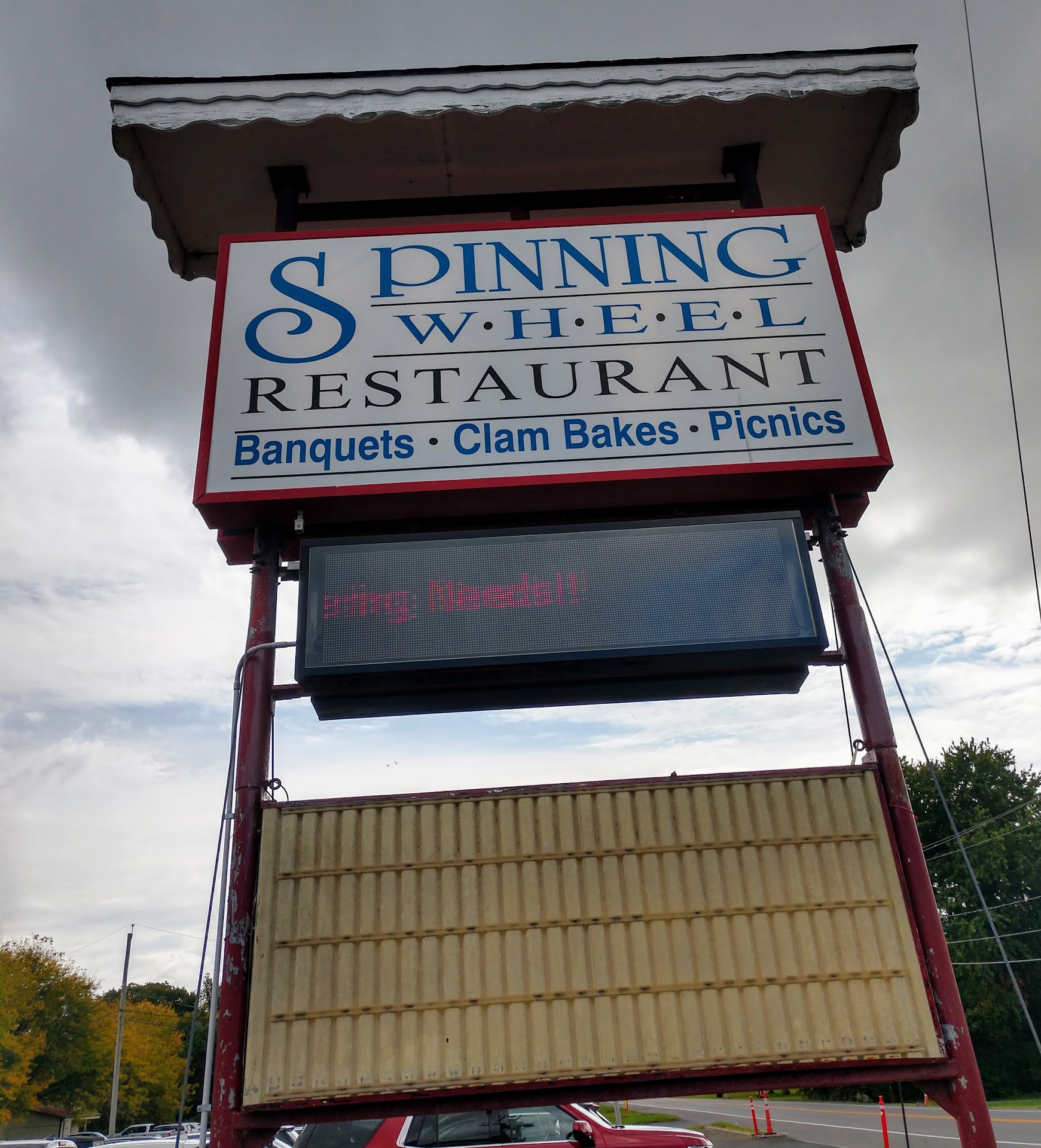 Read moreUntil they closed in 2018, our union held a highly anticipated annual clam bake at Hinerwadel's in North Syracuse. The venue for that joyous gathering has been moved to the Spinning Wheel which did not disappoint. Like Hinerwadel's, their clambake includes an abundance of food to choose from in addition to the bountiful baked clams with melted butter dipping sauce. This included salads, hot dogs, sausage sandwiches, barbecue pulled pork, delicious meatballs in marinara sauce, roast beef sandwiches with horseradish sauce, and for dessert, the best mixed berry crumble I've ever encountered. We were lucky to have our event on a beautiful day at the end of September when the shaded outdoor tables proved very popular. The Spinning Wheel restaurant and bar is located in a smaller building, adjacent to the event center, where you can get a dozen steamed clams for $10 (in 2024) as well as sports-bar menu items. This seems to be a gathering place for fans of the Las Vegas Raiders football team. Go...