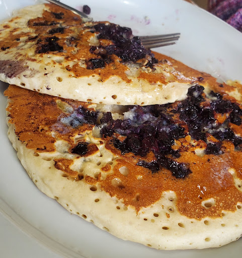 On this visit, we ordered blueberry pancakes, French toast and a couple side orders of bacon. The French toast was pretty good, but lacked flavor. The blueberry pancakes however, were very rubbery and not particularly edible. The worst was the bacon which appeared to have likely been microwaved. It's paper thin, has no flavor, and its texture reminded one of us of plastic laminated book covers at the library that have dried out and flaking off after a few decades of wear and tear; it reminded the other of those mouthwash strips that melt on your tongue. Definitely not worth the $5 side order price.