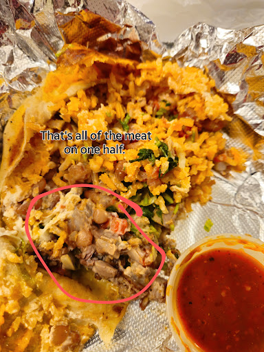 Read moreI was initially surprised that no sour cream was given with an order of burritos and tacos, but I digress... I Ordered a carnitas burrito. The carnitas is hardly existent. This burrito is 90% rice and lettuce. And the meat that is here, is bland and has zero flavor to it. If I were to have eaten in blindfolded I would have thought it was vegitarian burrito. I was starving so I decided to try and eat it anyway but it fell apart as the tortilla was pressed on a pan or grill so the outside was crisp but the sides were moist and soggy. I don't like to leave bad reviews but this was AWFUL. The birria tacos were edible but stale. And It has nothing to do with getting in take...