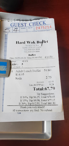 Read moreIt's been a few years since we've eaten here as buffets and dieting aren't exactly compatible. But as a holiday splurge we decided to go in for dinner. And fortunately or unfamiliar, it was like coming home. Our welcome was warm and it was communicated effectively despite my lack of fluency in any Chinese dialect. Because dinners here are crowded, the food is refreshed frequently and comes out of the kitchen hot and kept that way on the steam tables. While you don't go to a buffet expecting haute cuisine, the food is consistently good and the variety is excellent. In addition to the expected meats there are quite a number of seafood dishes and enough vegetarian dishes, salads and bean curd dishes. Desserts include self serve ice cream, puddings, fruits and several less than delicious cake options. They are also generous with drink refills (drink more-eat less). There's no alcohol available. For about $25 per person Hard Wok is a satisfying option and...