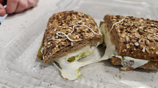 From the first time I went, I was hooked. It's such a welcome place, to have such a variety of healthy options, delicious food, very satisfying. I've been there several times since and will keep going. My favorite salad if the arugula feta which is often sold out, so the earlier you get there, the more likely they'll still have in stock what your want. This place gets very busy from early noon and at times your can't even get a table upstairs without waiting. The minestrone soup is delicious and so filling. I love their muffins, carrot and blueberry are quickly sold out. The muffins are delicious, wholesome and not too sweet. I've tried the spelt pizza with vegetables and my favorite is the spelt (fresh) mozzarella pesto panini, OUT OF THIS WORLD! The drinks are yummy too! The prices are fair considering the high quality ingredients.