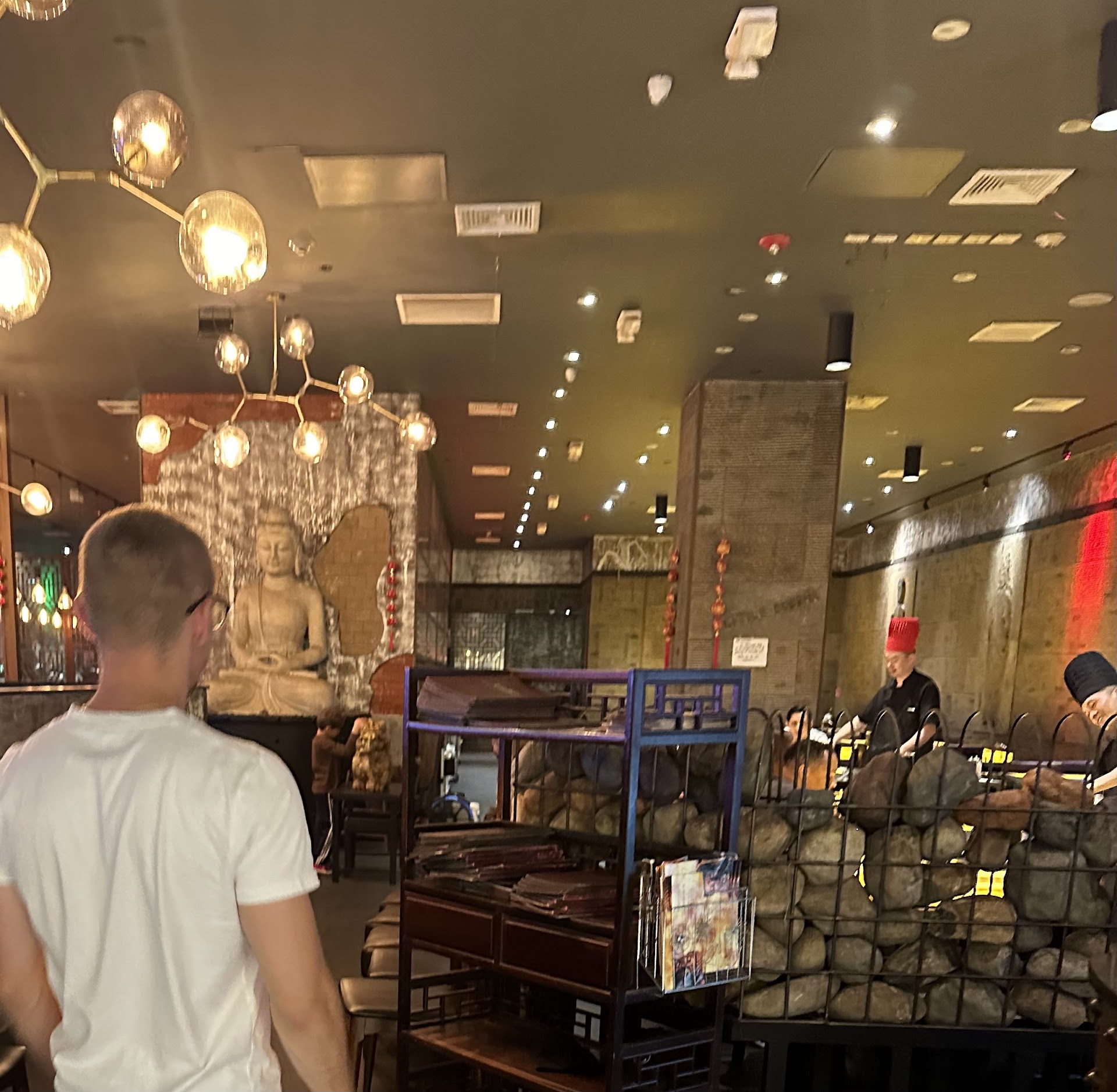 As you make an entrance to the opening of the restaurant you are welcomed by a beautiful setting, an enjoyable fusion of unique ancestry stones and artifacts. The wait staff were friendly and efficient, doing daily checkups and informing when the tables will be ready. Wait time is quick and efficient, they’re already in preparation for you and/or the group to an opening table. There’s reasonable prices so be prepared; because of their foresight for situations that do occur for that reason, there are benches by and outside of the restaurant.
