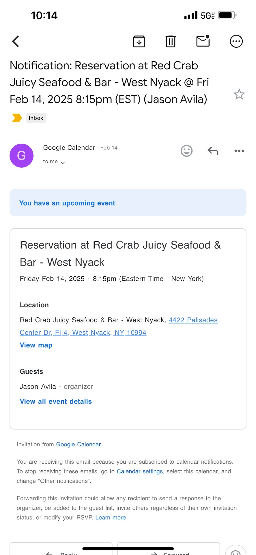 I had a confirmed reservation for 8:15 PM on Valentine’s Day at Red Crab Juicy Seafood & Bar - West Nyack (also referred to as Red Crab Palisades), but the experience was a complete disaster.