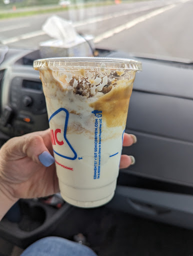 Ā Ā Ā Read moreBy far the worst experience I've had at a Sonic. We pulled up to the stall to order press the button, about a minute & a half a girl comes on and says "be right with you" no big deal.. we waited 6 minutes for her to come back on and say "sorry what stall are you?" We tell her, place our order, when I order onion rings she says "we're out of them for tonight", she tells us we can pay with card through the machine, or cash to the car hop. We try to pay with a card, it doesn't prompt on the screen. She comes out with our food, she seems to be the only one working. Gives us half our order, then we tell her that it didn't give us the opportunity to pay with a card. She says "oh yeah I forgot to tell you cash only." We panicked since I didn't have much cash on me, $12 to be exact, the total was $23. She takes the rest of our food and my card and returns inside to "try and run it" then comes back with only my card and says "it didn't work, but you guys can keep what you have". We finally manage to come up with enough cash to pay for our order, which she takes and gives us the rest of our food. We start to open the bag to find that the tots were extremely crispy, what was supposed to be grilled chicken is also crispy, my Sonic blast is partly filled with what taste like plastic, a Coney that was actually burnt, and absolutely no napkins. We're starving and we've now been here 20 mins so we eat the food, what we can and I went to throw the bag away but the trash is completely full. Employees were sitting at tables, bouncing into the kitchen and coming back out to sit down again. This was an absolute horrible experience, and we will not...