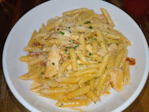 Now, one would expect (again, should have known that this was not a normal Italian style place) a full piece of chicken or a link or two of sausage when charged a premium for it to be added to a pasta or salad. Well, I guess not. At least not here. My partners dish lacked in flavor, seasoning, and the extra $8 for the chicken. We could only count three measly slices of chicken. And the person sitting to my other side ordered the Italian crumbles had nothing noticeable or resembling of sausage taste. The Vodka, which sounds too full of itself to be called vodka ala penne, had a sauce that was very heavy, yet watery. How does that work?