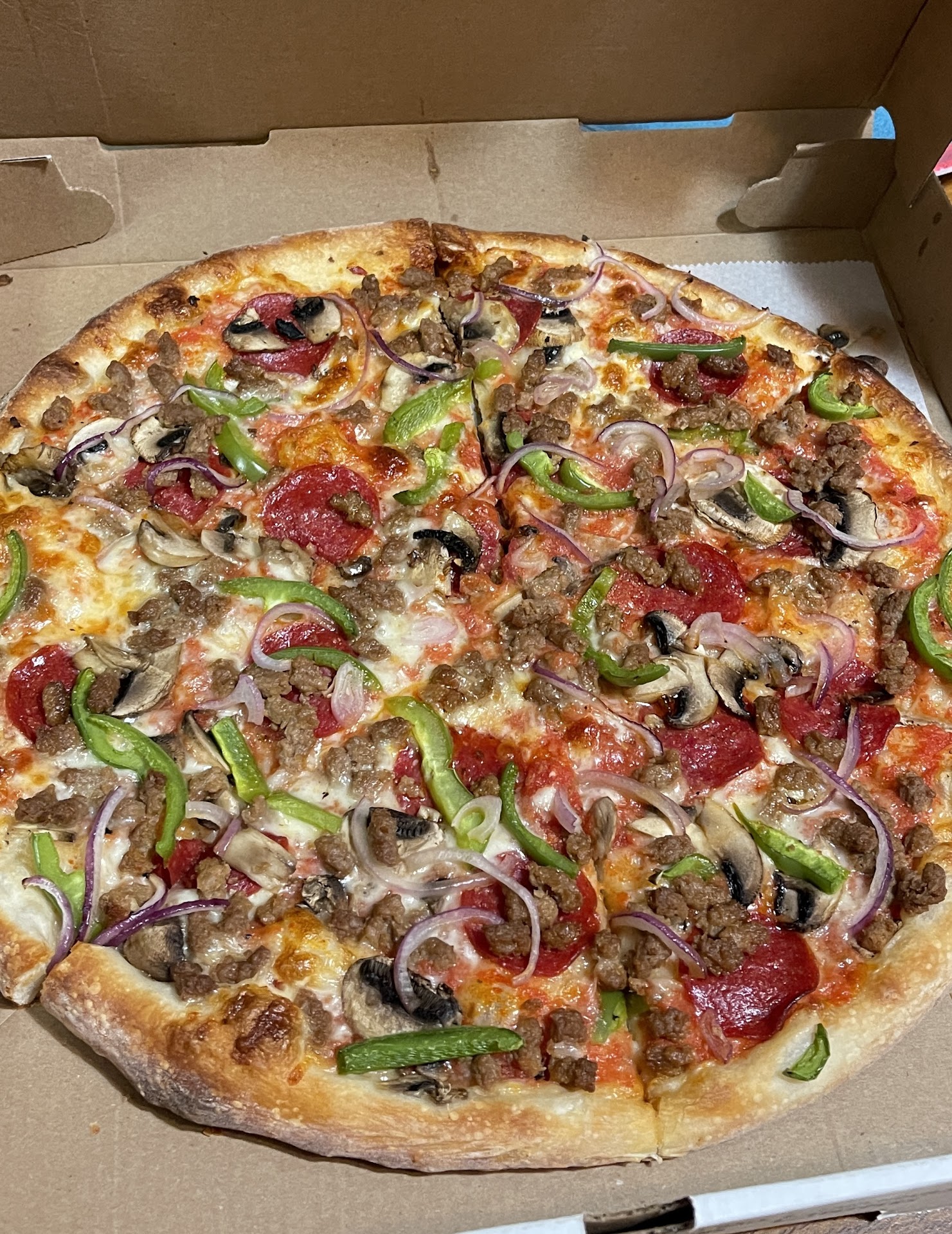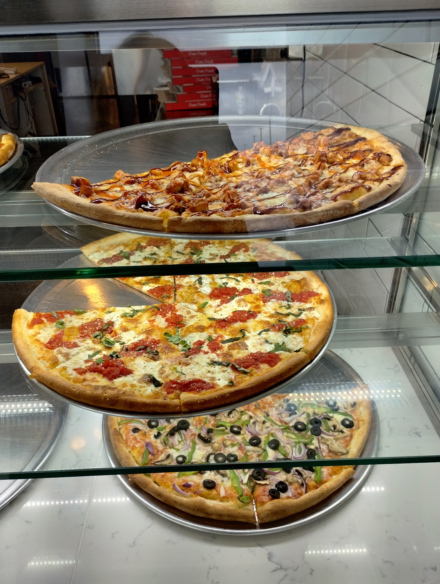 Read moreDecent food, not so decent service. We placed on online order on a Saturday night and it said approx 20 minutes. Yeah ok. Got there right when the order should have been ready and expecting it to take a little longer which would have been ok. They said it would be 15 minutes. They were busy and it was a Saturday night. Not the end of the world. Right after we got there a lady came in a placed a takeout order. About 20 minutes later her food came out and she left with it and the guy asked us "what did you order again". He informed us they were out of the garlic knots and could replace them with garlic bread as well. 25 more minutes later our food finally came out (obviously they had lost or not started our order until he asked what we had). During that time we watched another customer pick up an order, but come back inside after a minute and say he was missing part of his order to which they replied "yeah we ran out of that" to which he asked "so no one was going to say anything and let me leave without it and scam me out of the money" . Kind of ridiculous. Meanwhile we get out food home and they STILL GOT IT WRONG. The garlic bread replacement they gave us was someone else's chicken parm sub. I'm sure that customer will enjoy our garlic bread. The customer service was lacking as most of the workers were younger folks that spent half the time staring at their phones. Shocker, right? The pizza was decent, the wings were a good size but under-cooked and the sauce was goopy. The chicken parm sub lacking any flavor at all. Will not...