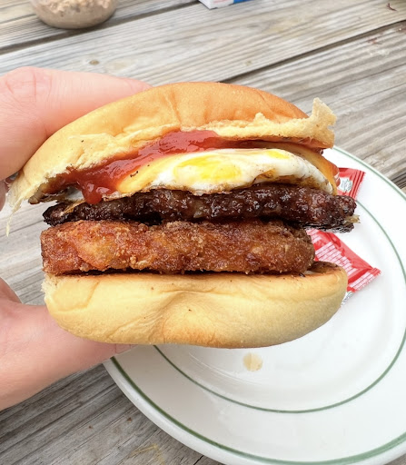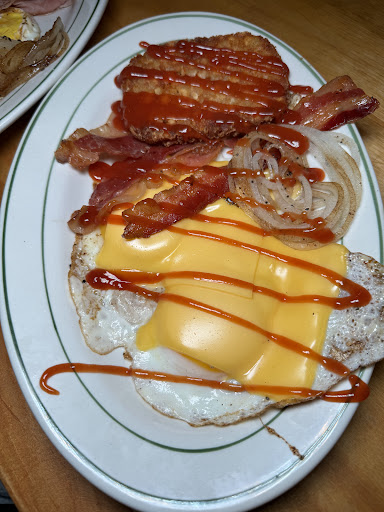 Banana bread on the griddle. I don't know if they used butter or lard, I don't really care if I get heart disease next week, it was amazing and I'll die happy. Warm bread is great, but all toasty and crisp on the outside, and fluffy nutty goodness on the inside sealed in with buttery aroma is out of this world.