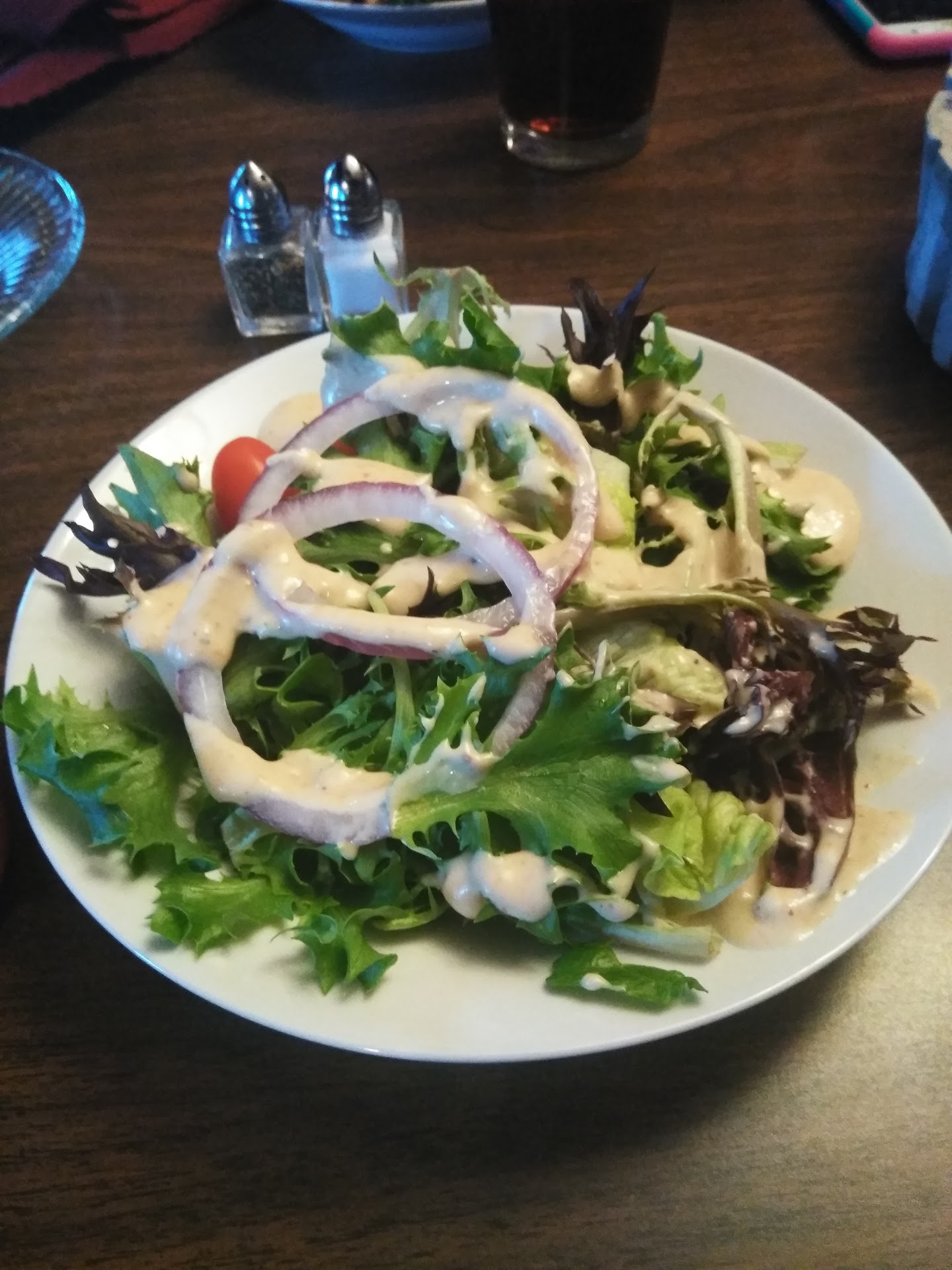 The food is good, if you can get that far.... Getting there is no problem, there is usually plenty of parking up behind the restaurant (FYI). However, before you go in to even ask for a table, you may way to say a prayer, or bring your rosary - otherwise you may be left unprepared to have a nice day easily be ruined by the serpentine-like hostess, who seems to have no issue with completely disregarding the experience of any guest in or trying to get into the place. Much like how you might expect to be treated by a rabid badger, you can expect a crude and classless reception by the scarecrow managing the place - as she wanders around in flip flops and no bra and ignores you, while yelling at whatever poor soul made the mistake of calling the place (the phone is permanently attached to her). If by some miracle she asks you to speak, get as much as you can say into once sentence - for you never know when she will cut you off by shoving her finger into your face to make you shut up, simultaneously chewing you a "new one" like a deranged dog species - or turn you to stone (if she even bothers to glance at you) with her completely annoyed and disgusted expression - which must be permanent - as she parades around displaying no other expression but her complete annoyance for everyone and everything. Don't offer to wait for a table either, because she will promptly shoo you out of the restaurant like you are a giant stray cat.... complete with the "shoo." Best personal advice; is to avoid being seen by her, and try to get one of the terrified looking servers to help you - that might get you further in your attempt. Although, I can only imagine the reason they all look terrified and scramble around like frightened mice is that their livelihoods depend on if she has fed recently or not. You may also fair well if you have a friend tag along that is experienced in the areas of either: big game hunting, zoology, or exorcisms - they usually know best how to handle large, untamed beasts that have gotten loose and are terrorizing the villagers. It has become a very easy decision for myself and those I travel with when we come to town - this place IS NOT on our list of options for dining. Sometimes good food isn't worth the effort needed to get through the uncivilized - dried up old corn husk of an individual they have as the...