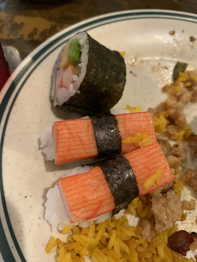 Read moreMy mother and I went here for lunch today and the food was absolutely disgusting and the service was bad. We asked for a water and a pepsi/Coke for drinks my mom got her water but I was given mountain dew, not even close to coke. The food was old, and had been sitting out. The sushi looked like it had been out for a day, and as soon as you put meat on your place (spare ribs, different types of chicken) it was cold and gross and while getting the food all you could smell was mothballs coming from the kitchen. Before we even left the restaurant we thought we might have food poisoning, and felt sick. The only thing that was decently good was their desserts, their apple slices were floating in a mysterious liquid and there were no labels on the food. When we got our check it was about $20 for two adults and a water and a "Pepsi", which is a little pricey in our experience. Even their American food like macaroni and cheese, pigs in a blanket and ribs were disgusting. Later I ended up having food poisoning, go here at...