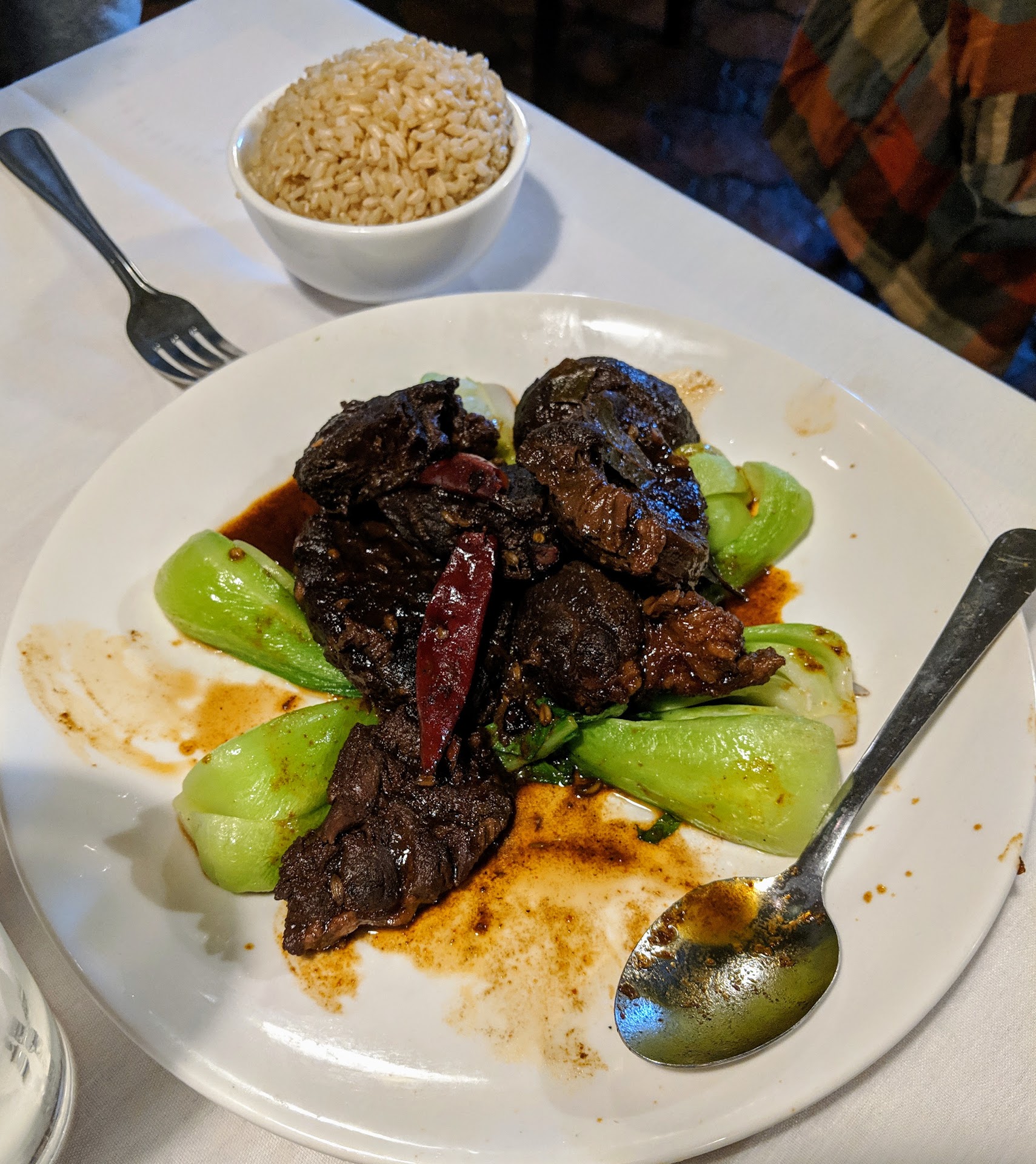 We visited Ala Shanghai with great anticipation because of positive reviews and recommendations we received. Unfortunately, our meal was a dismal failure. The teapot of tepid, dirt-brown water that awaited us was foreshadowing. Their vegetarian hot and sour soup was a delight: flavorful, chock-full of mushrooms, carrots, and tofu, and expertly spiced. It was the culinary high point of our meal. The Shanghaiese steamed pork dumplings were mediocre, lacking any flavor and umami. After a while, a sizable cauldron containing our family-style casserole arrived. Our inexperienced waiter, while eager to please, had precariously balanced the steaming pot on the end of the table and proceeded to serve. He managed to scoop and serve all the vermicelli into one cup. Another got all the shrimp while got I received a bowl full of napa cabbage. The floor manager got his attention and the waiter relocated the pot to the center of the table and left. Not sure what family styled this casserole, but I feel sorry for them. The proteins were boiled into oblivion. But one could easily discern the chicken from the pork belly. The chicken had ample cartilage and bones while the flavorless pork belly had sizable rubbery fat. I learned that restaurants can be supplied with tiny, perfectly crescent shaped shrimp. The brown neoprene wads were in fact mushrooms. Part of the casserole had a festive appearance with piles of napa cabbage accompanied by pink strips of a ham-like product. Not to be outdone by the casserole, the Szechaun Style beef lacked chili and the accompanying bok choy was fresh: rock hard fresh.