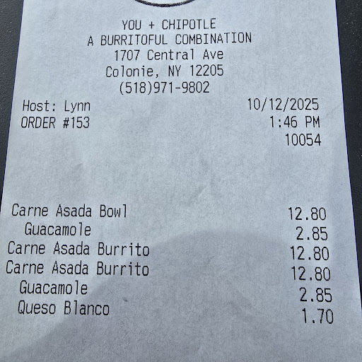 Ā Ā Ā Read moreIāve only been here three times so far and have never eaten in but my pickup experience has gone well every time! In comparison to the one on wolf road, this location prepares our pickup orders much faster (sometimes even before the estimated pickup time!) and gives much bigger portions!! A few months ago we got burritos from the wolf road location and were shocked at how tiny they were, it was so disappointing. But each time we have come to this central ave location we have gotten humongous burritos! I also really like the chipotlane option, driving up and picking up the orders is...