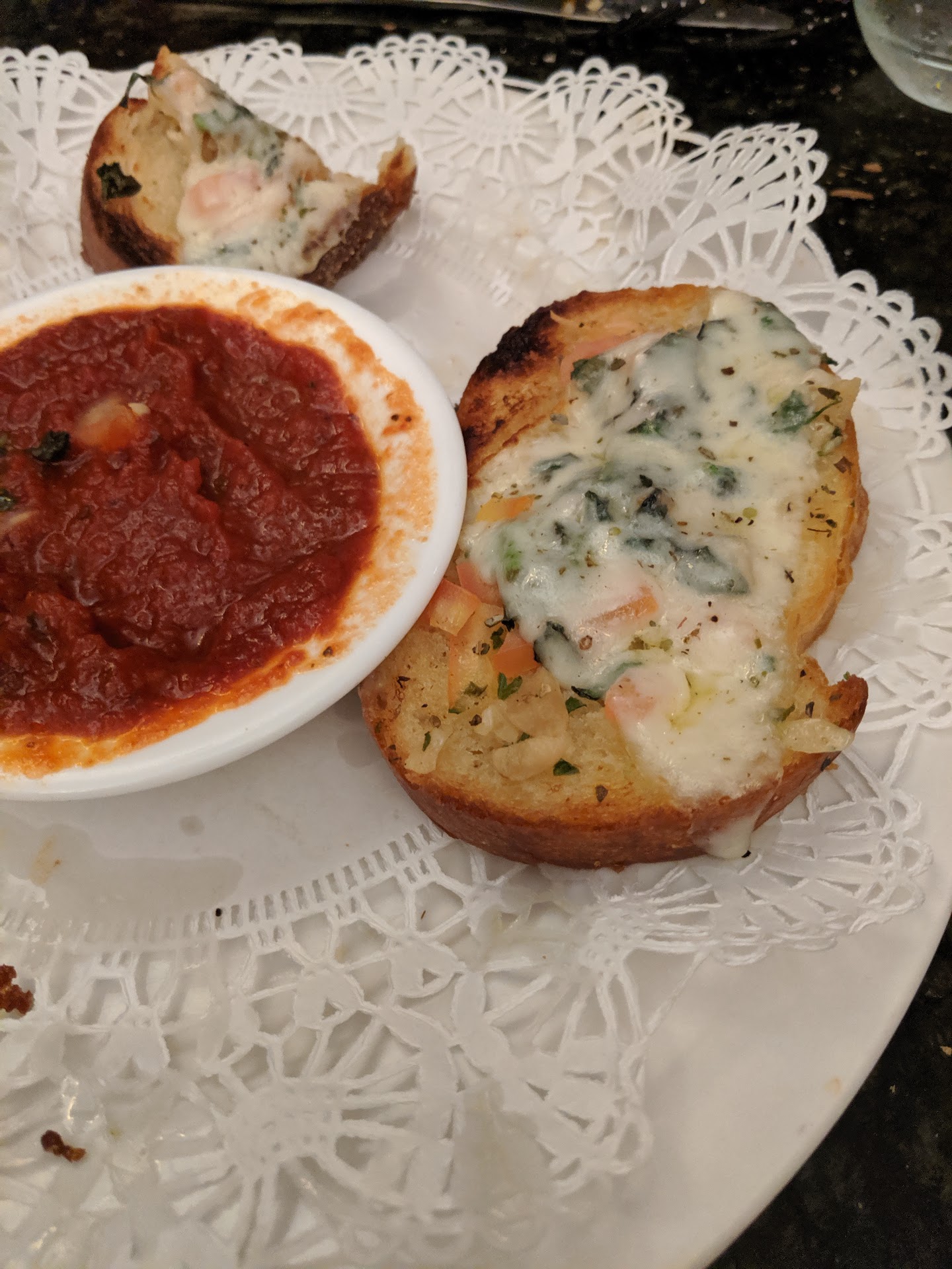 The food was below par. We started with bruschetta, I wouldn't recommend that to anyone. It was garlic bread with a slice of tomato and a slice of Mozz melted on top. Idk who decided that was bruschetta but it is not!!