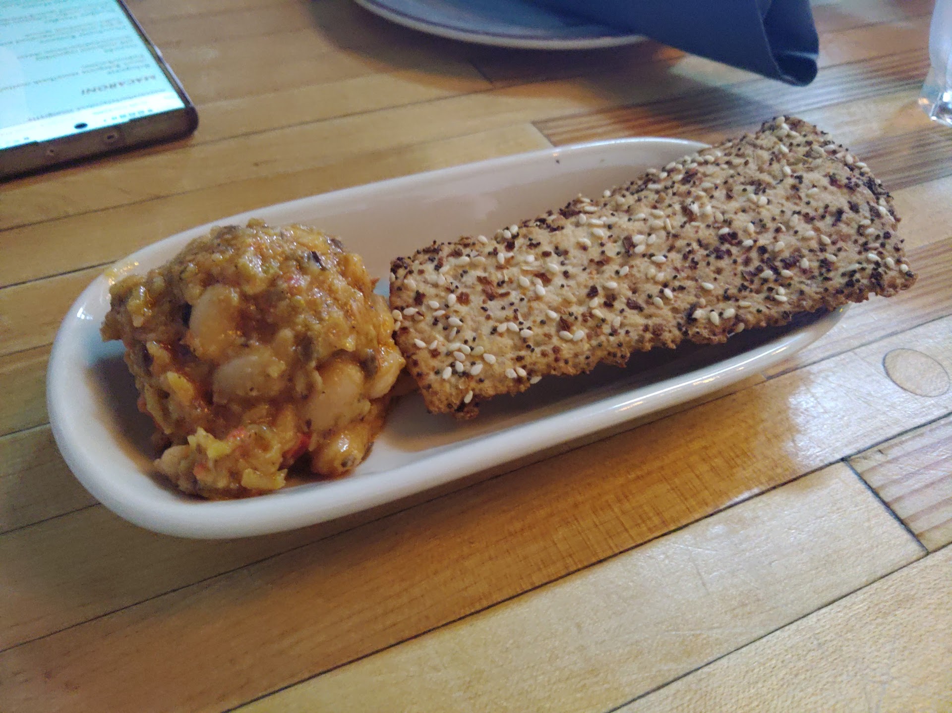 The restaurant itself is very open, with some kind of upbeat music playing. The seating is comfortable enough, and you can find your preferred level of lighting based on where you'd prefer to sit. They even offer outdoor seating, though on our particular visit the weather was less than acceptable for that sort of thing. Sadly due to the open door mode they were in, as one of the walls is a garage door that leads to the outdoor seating area, the restaurant was flush with little gnats and house flies buzzing around the dishes and being constant nuisances. If there's anything I hate the most in a sit down restaurant, is needing to shoo away a bug every 10-15 seconds from a plate of food.