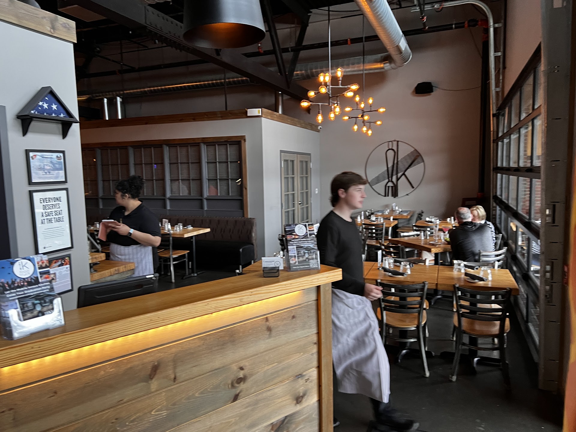 Read moreI work at a restaurant so im pretty picky when i go out to eat but over all this place was great. For aps we Had the power 4 salad and pork buns. Dressing on the salad had a bit of a fishy flavor but the rasins and grapes packed a lot of flavor. Grapes were fresh too i hate soggy rotten grapes. Pork buns were even better sauce was good the bun was fluffy and the pork was crispy on the outside but juicy on the inside. It was topped with thin cut pickles and sesame seeds. For entrees we ordered lobster mac and cheese and wild boar grilled cheese. I especially liked the fries served with my sandwich. They were thick cut circles and they were seasoned well. The pork on it was served sloppy joe style so it was juicy, and the bread was nice and crispy. The lobster mac and cheese was served right in the small pot they cooked it in and had nice chunks of lobster in it. For dessert we had peanutbutter mud pie. I was a little disappointed with this one. The mix of peanutbutter on top and oreo crust made it almost dry despite the peanutbutter ice cream in the middle. It was still good but ill try something else next visit. Coffee wasnt that great but there ice tea was. It had almost no bitter flavor but wasnt super sweet wish i could buy a gallon of it. I also like the atmosphere. The kitchen was open, it was an open ceiling, and half the building was open to the patio outside so i didnt feel crowded even when it started to fill up for dinner. It was raining during our visit so there was a nice breeze with fresh air blowing over to our table. It reminded me of my visit over seas. Over all this place was great ill be recomending it to friends and family, as well as visiting again myself...